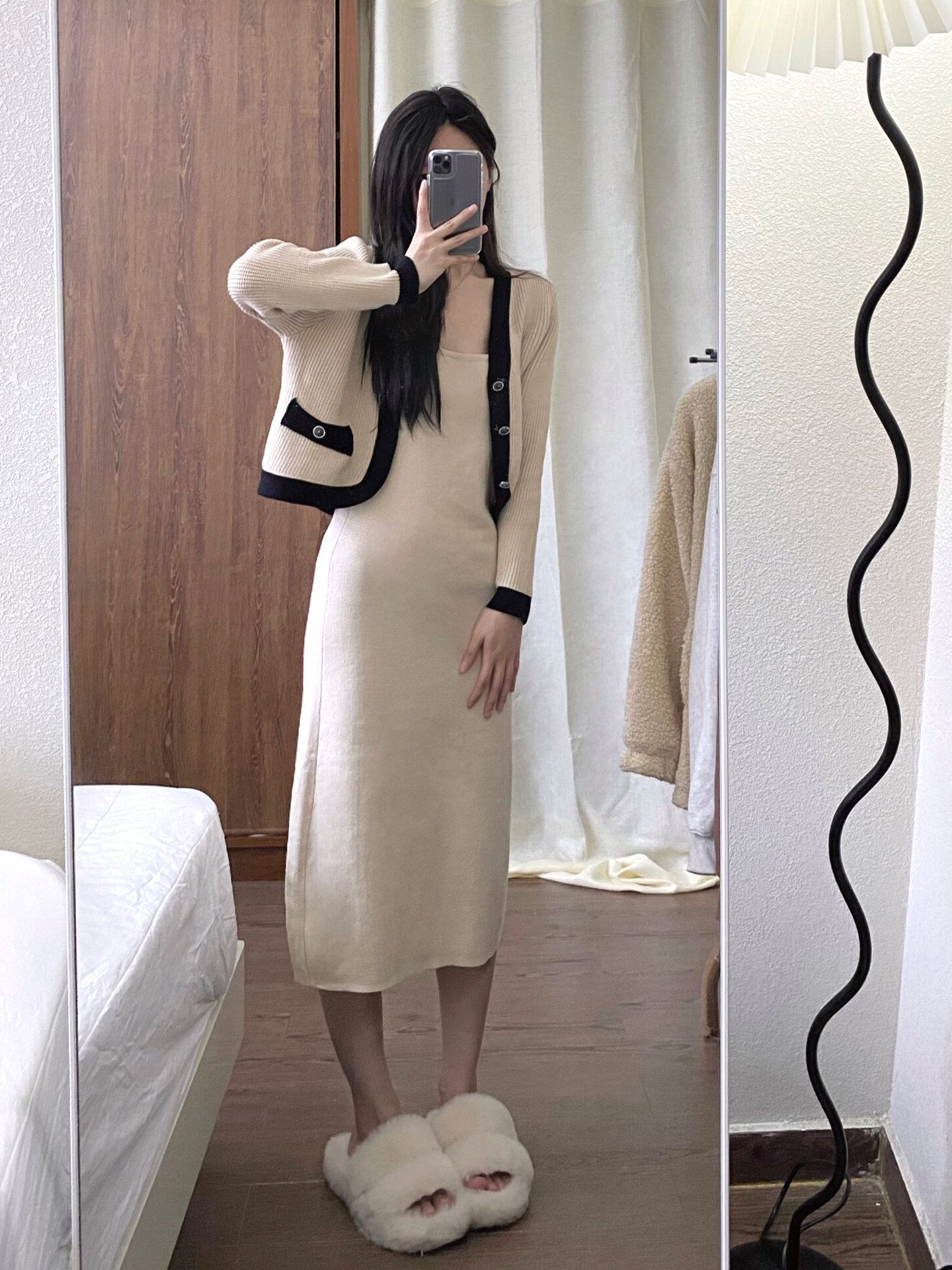 2025年秋冬シーズンに向けた高級感漂うレトロ風ニットワンピース2点セット