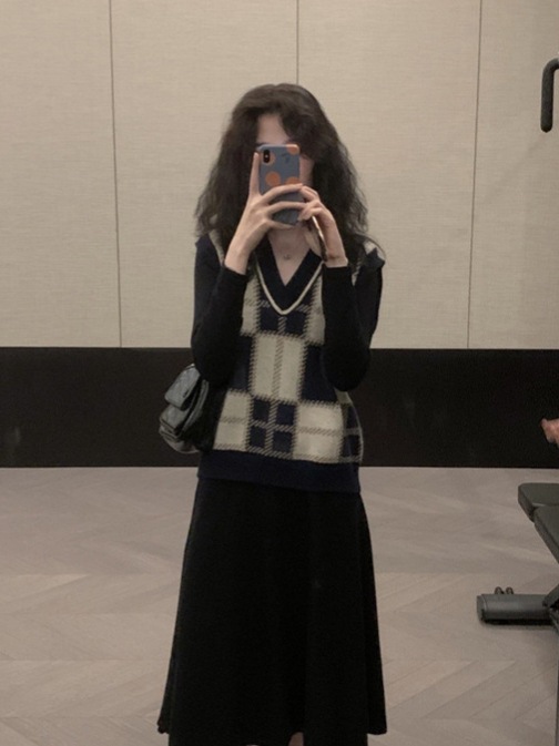 秋の装い:洗練されたツーピースセット - セータードレスレトロベストニットドレス