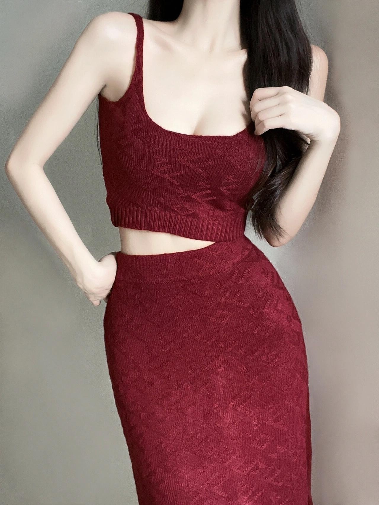 レトロでセクシーな大人の女性のファッションセットキャミソールトップとハイウエストスカートのスタイリッシュなツーピースセット