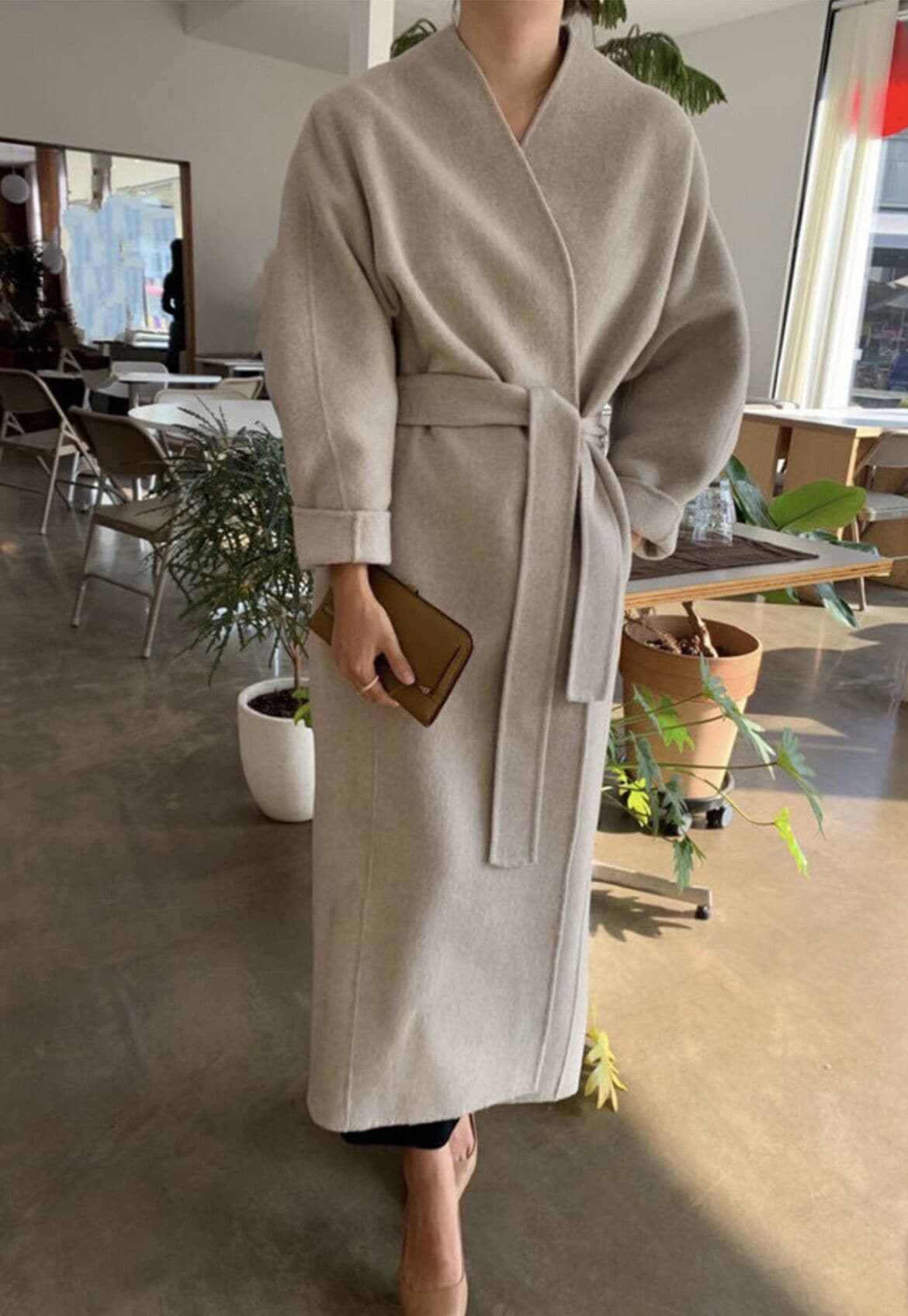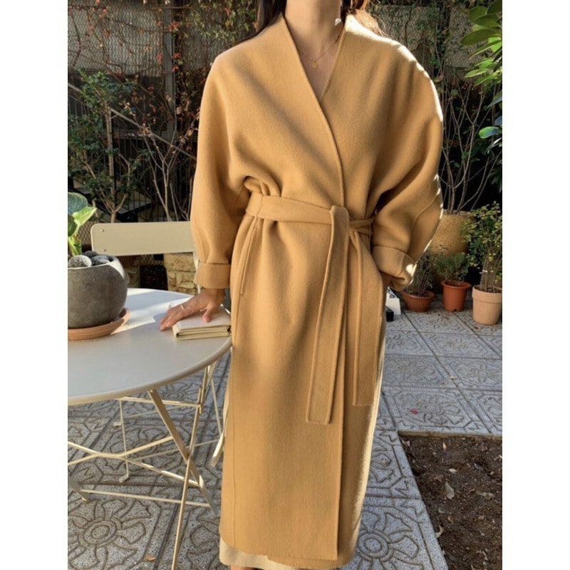 2025年秋冬 韓国風ウールコート レトロシック ゆったりフィット ベルトウエスト ロングウールコート レディース