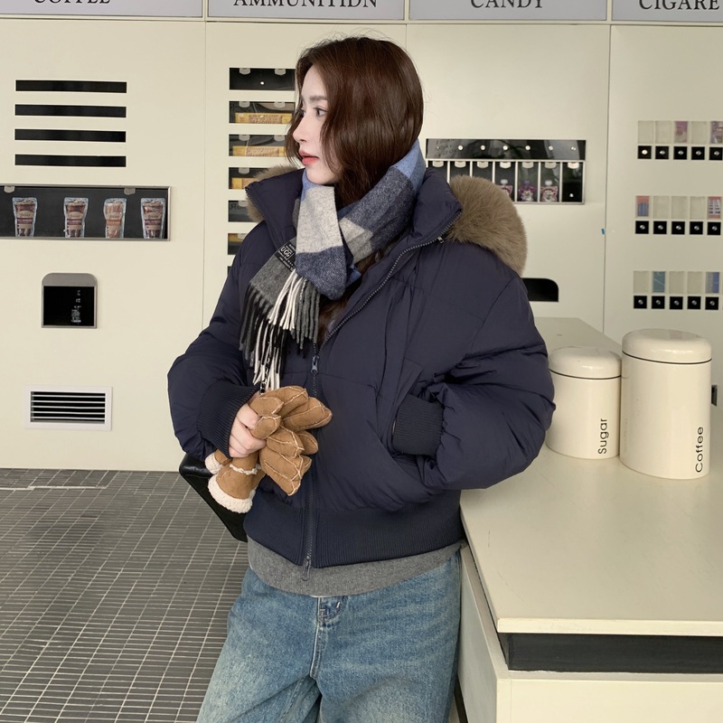 2025年冬 ゆったり スリミング フード付き ダウン コットン ジャケット ファーカラー付き ショートスタイル ウエスト引き締め 厚手コットンコート レディース