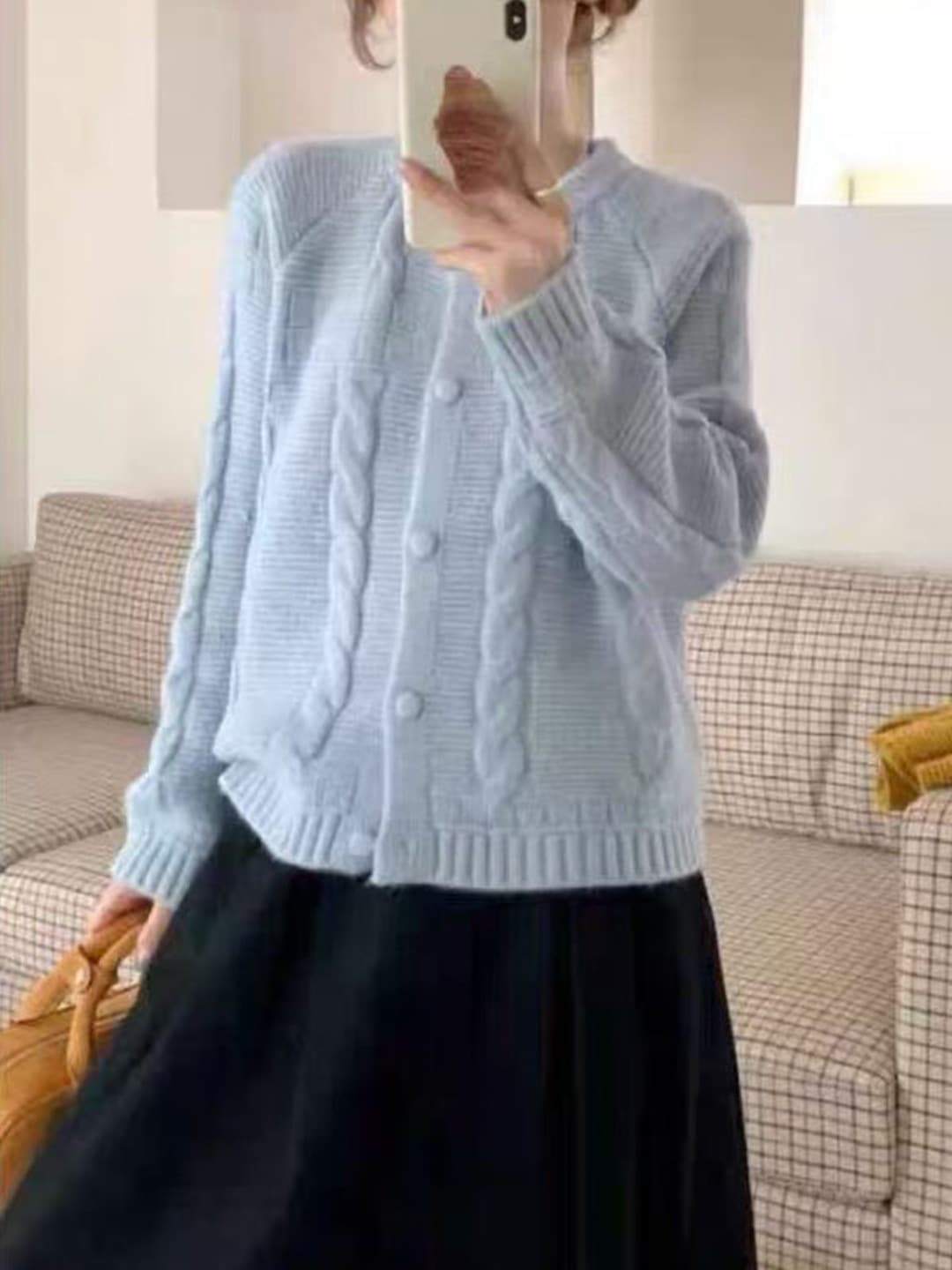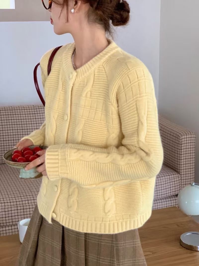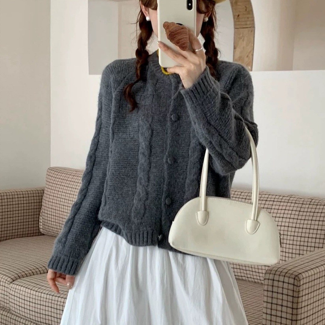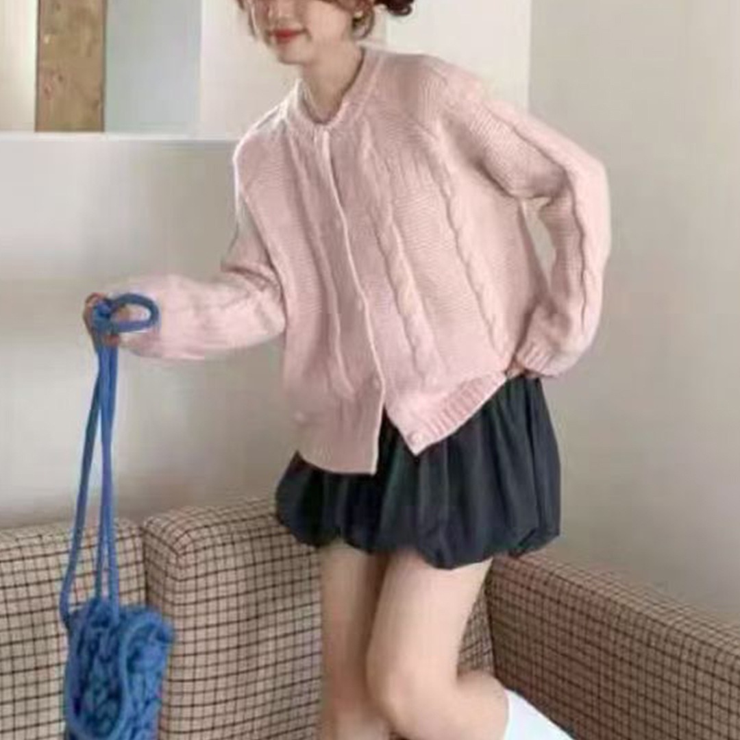 10個セット 2025秋冬丸首純色麻編みカーディガンレディース韓国版モチモチゆったり甘め風セーターコート