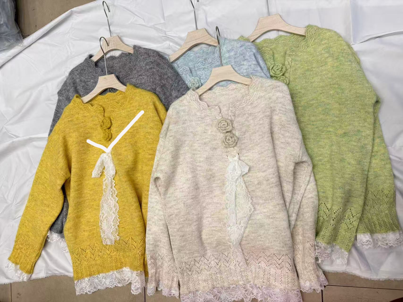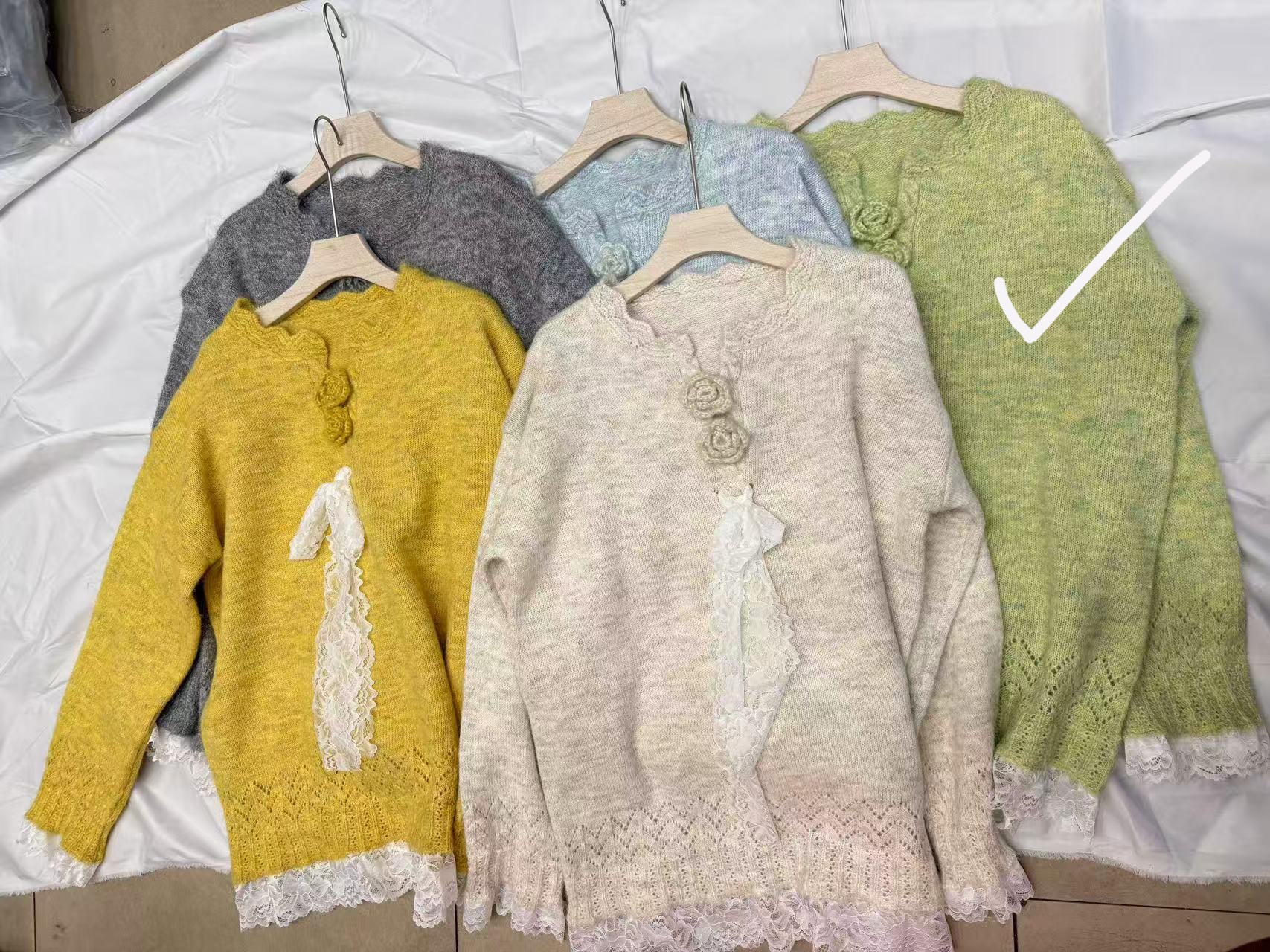 10個セット レース系リボン立体フラワーニット女2025秋冬ゆる甘風プルオーバーセーター