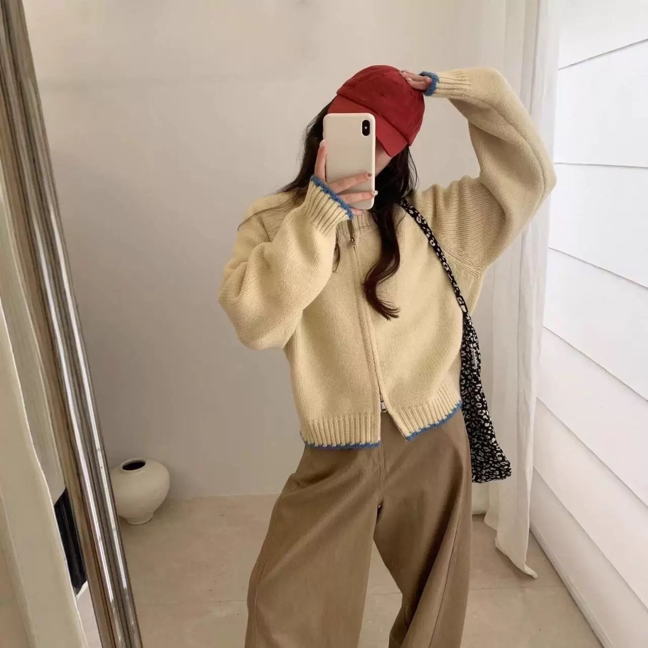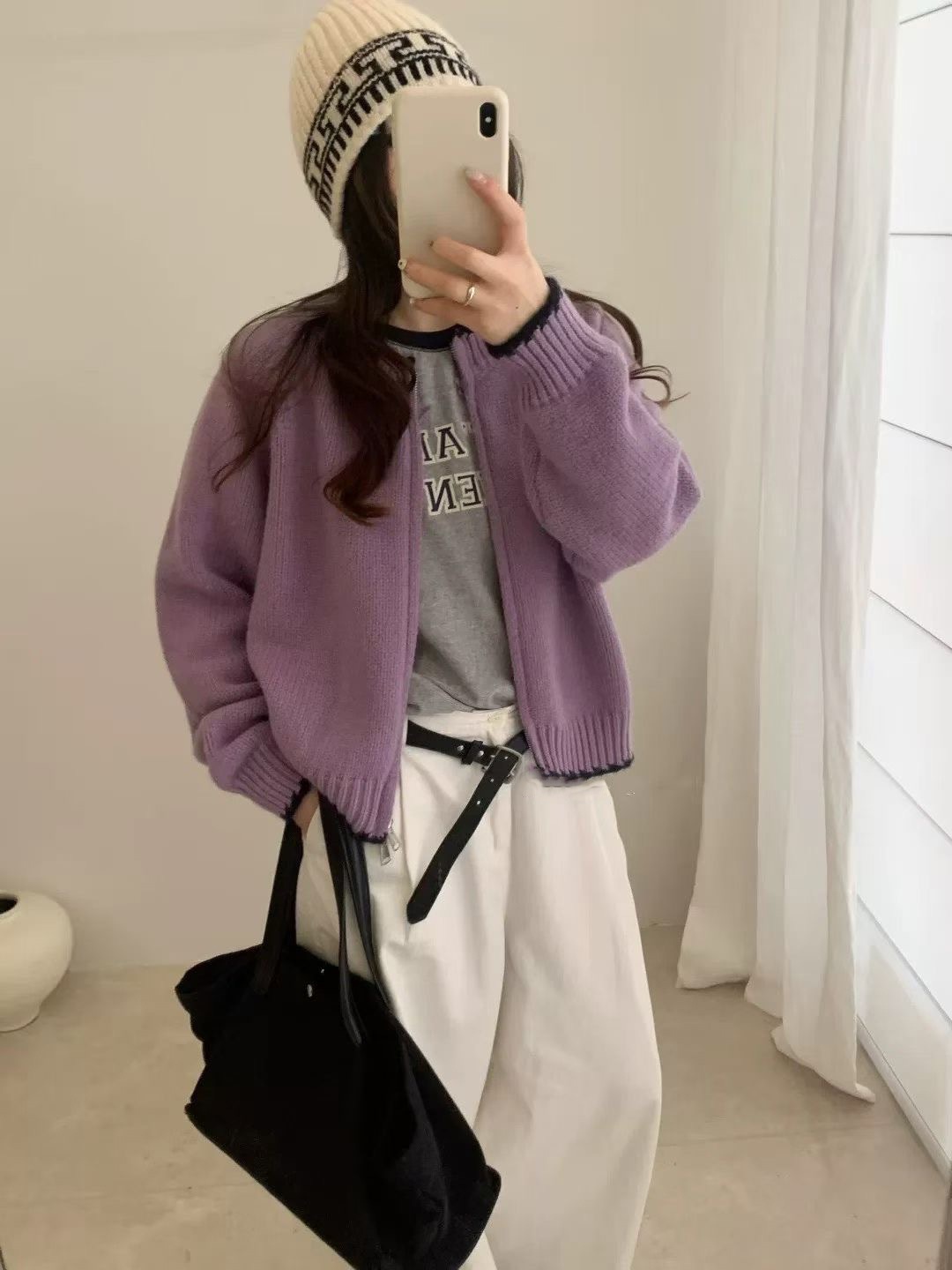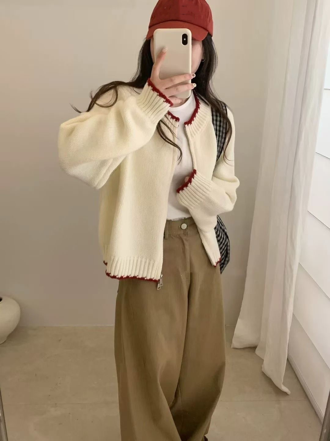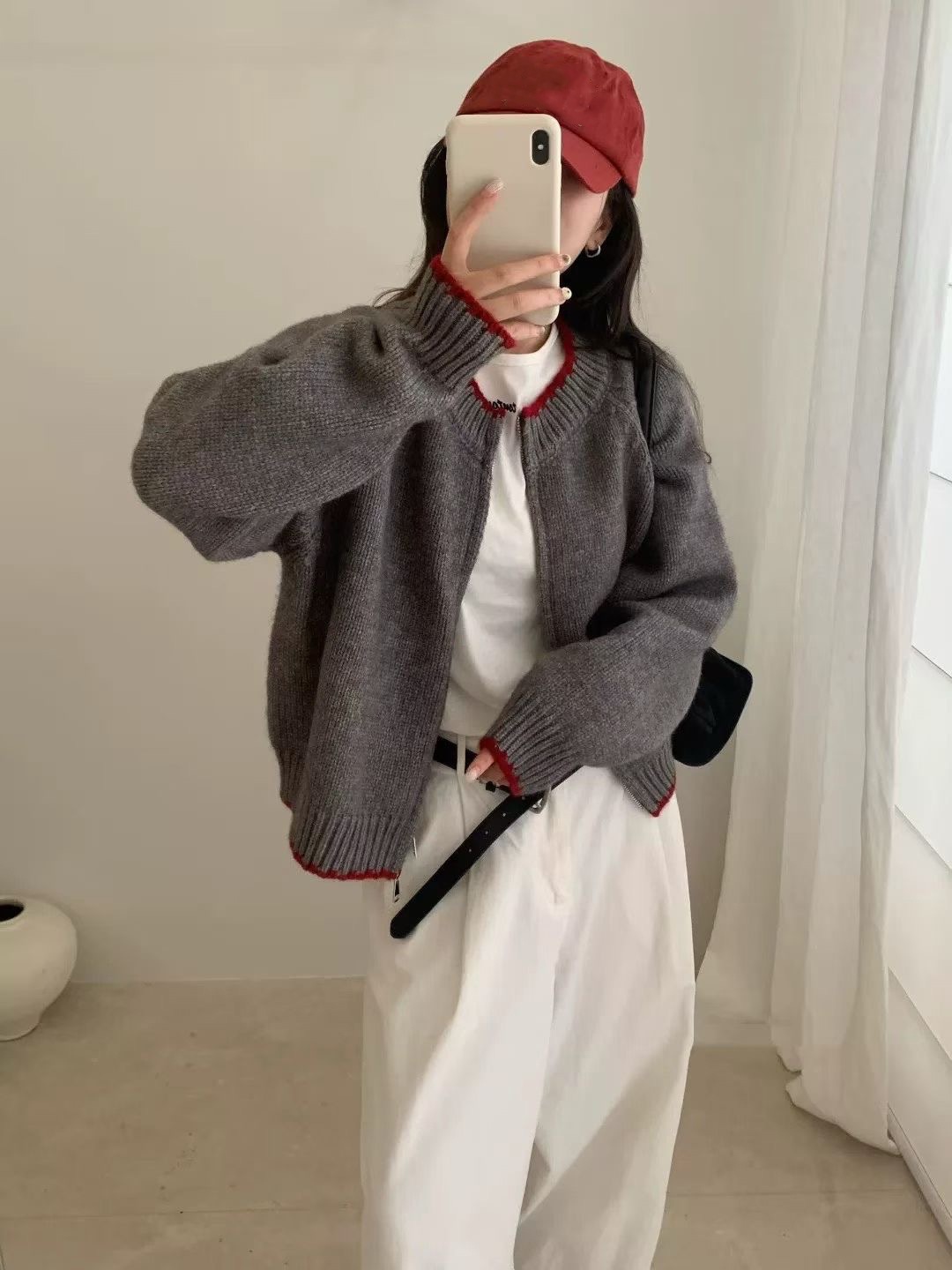 10個セット 2025秋冬韓系ぶつかり色ラウンドネックニットカーディガン女ゆったり100着シンプルカジュアルセーターコート