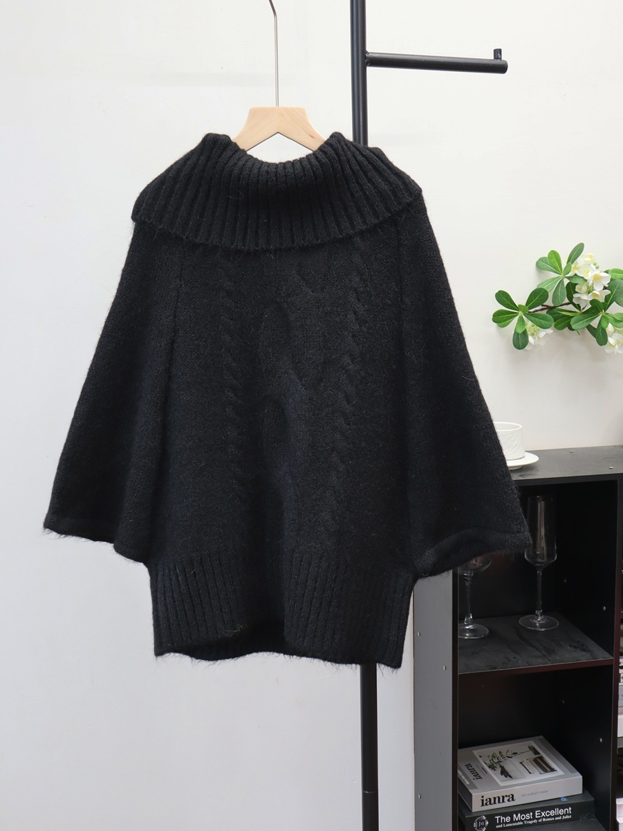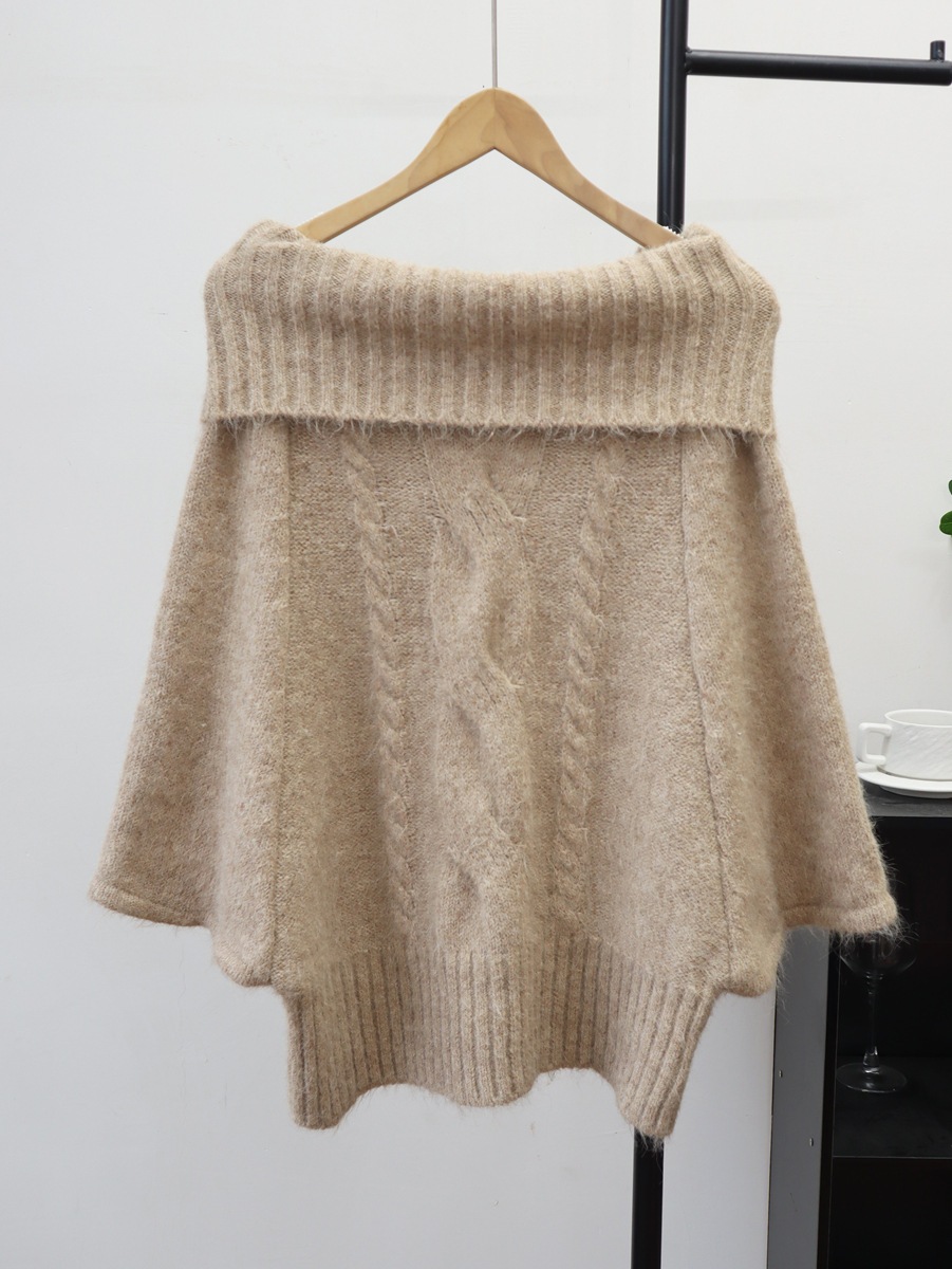 10個セット 2025秋冬ワンワード肩幅厚め麻編みマントトップスだるさ風セータープルオーバー女