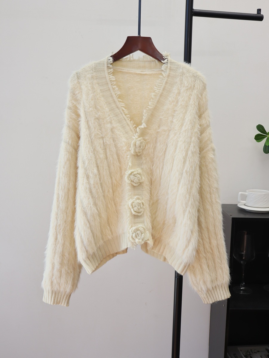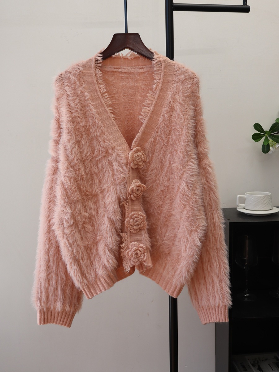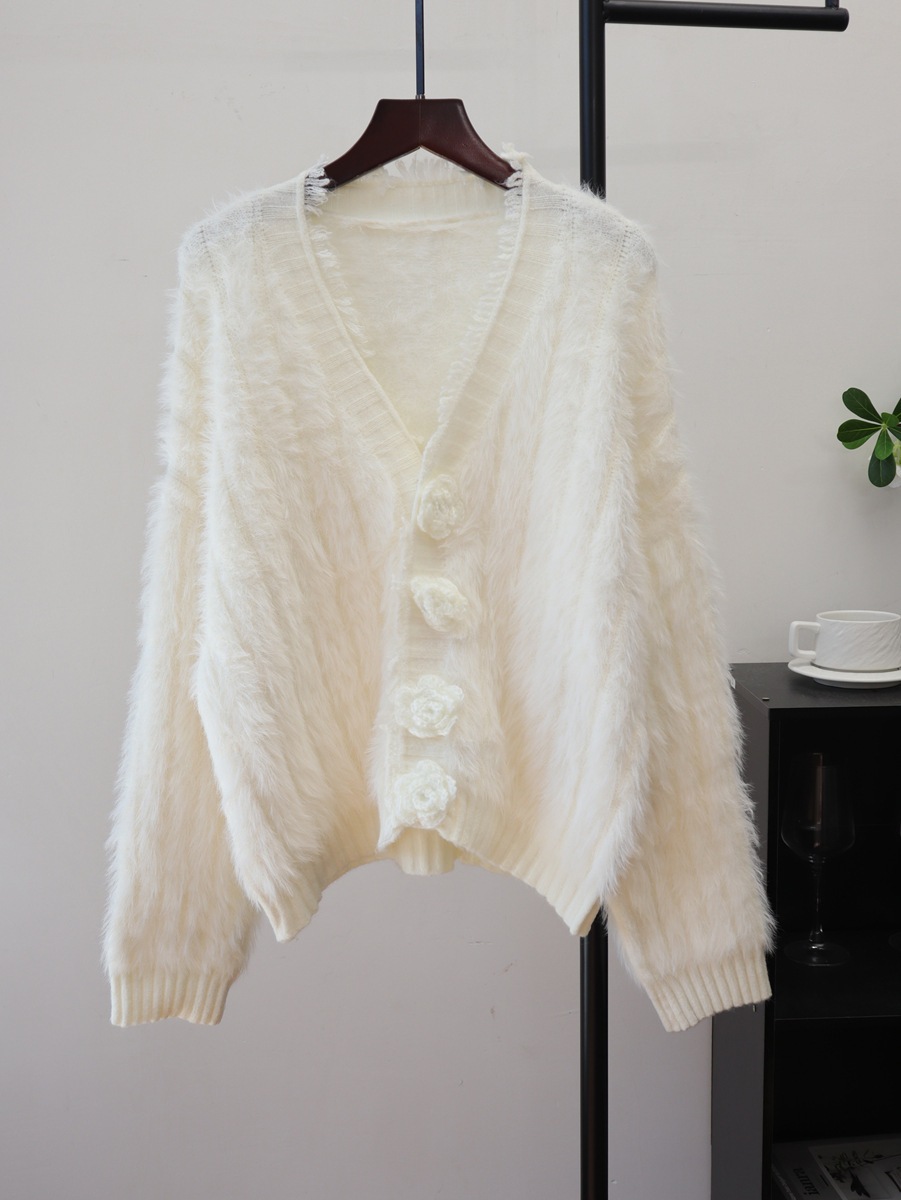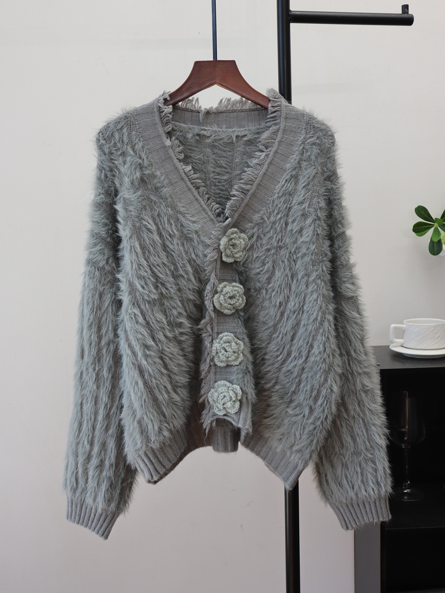10個セット 2025秋冬モチモチニットカーディガン女ゆったり立体フラワーセーターコート