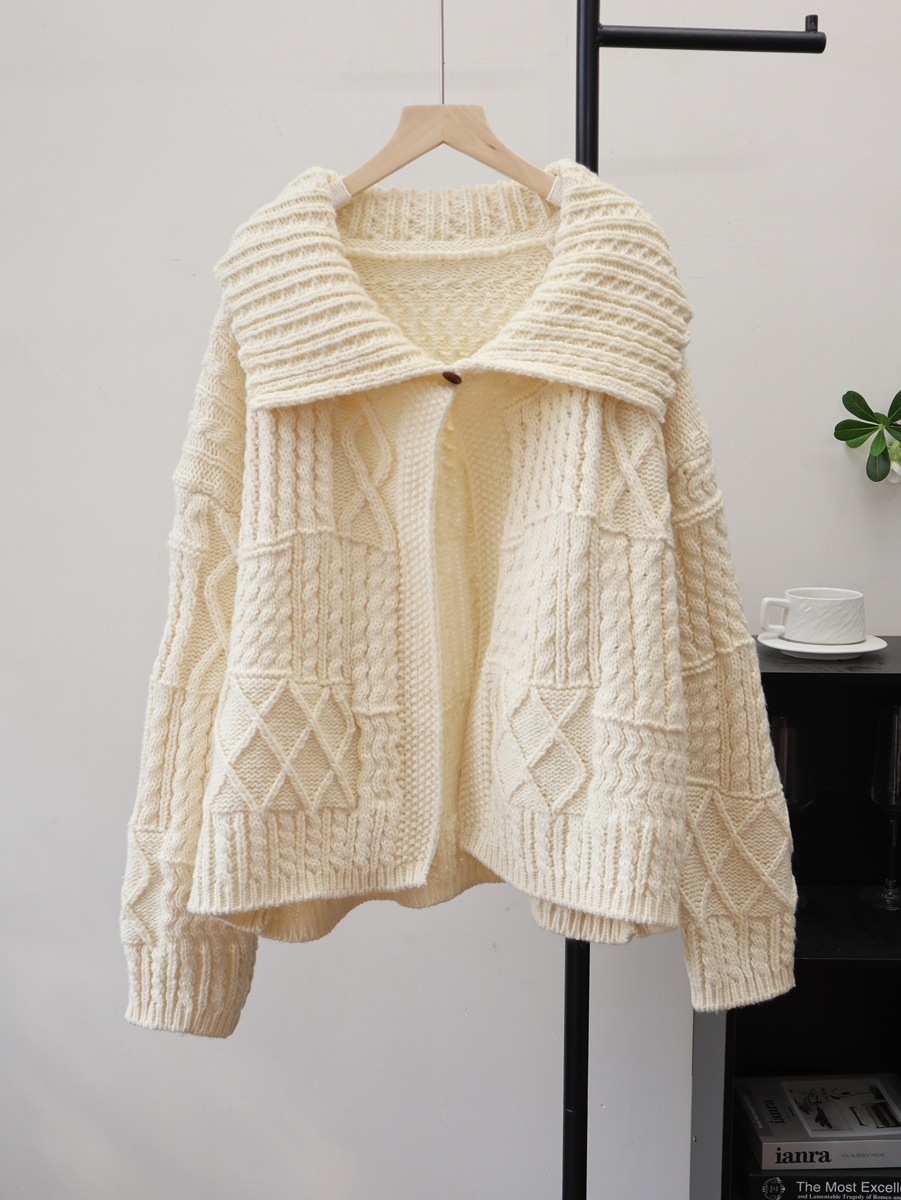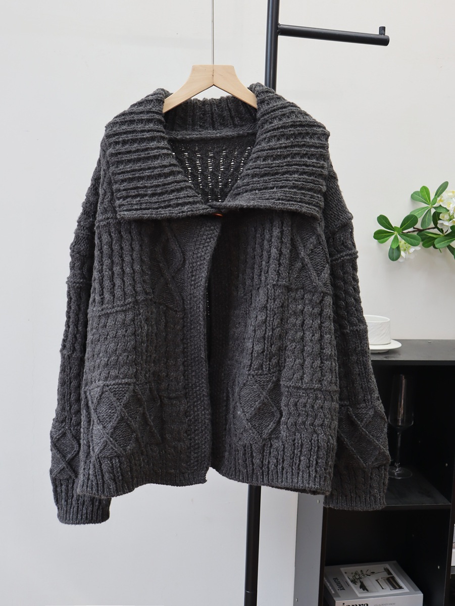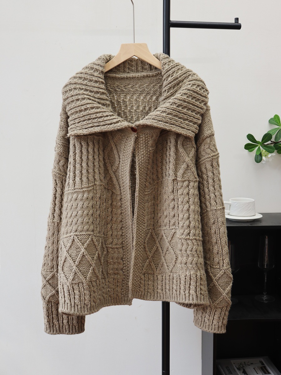 10個セット 2025秋冬韓国版ゆったり太糸開襟高級感ニットカーディガンレトロな麻のセーターコート女
