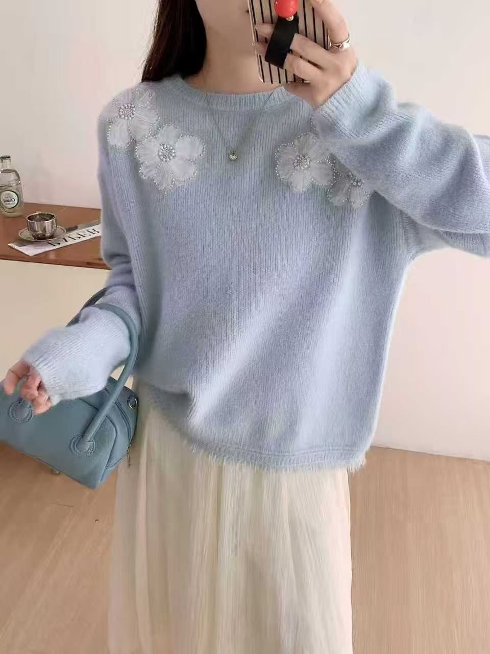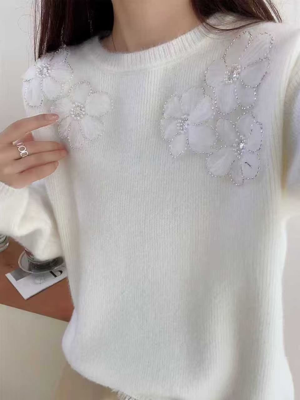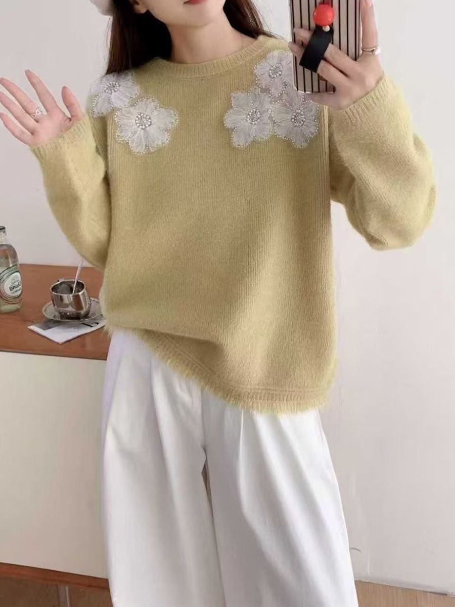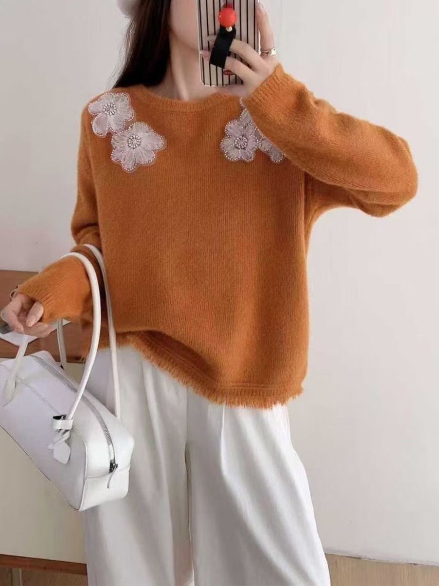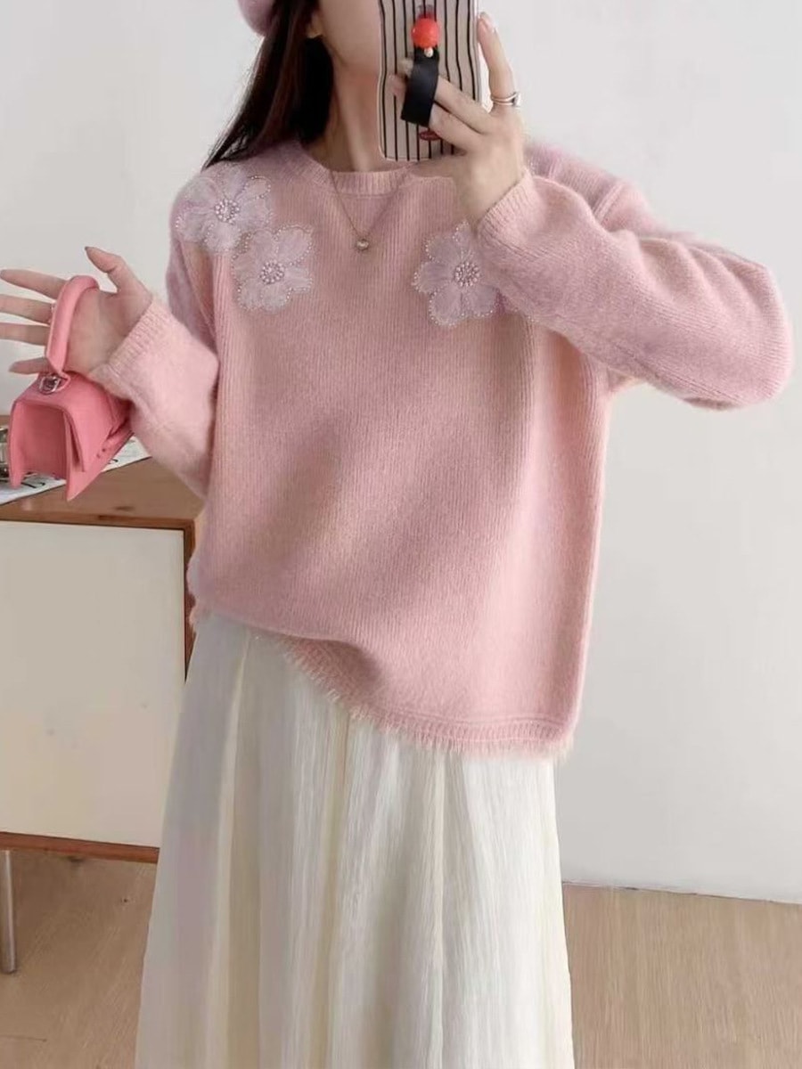 10個セット 高級感のある立体フラワーニット2025秋冬ふんわり甘め風プルオーバーニット女