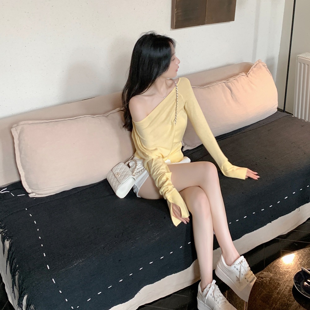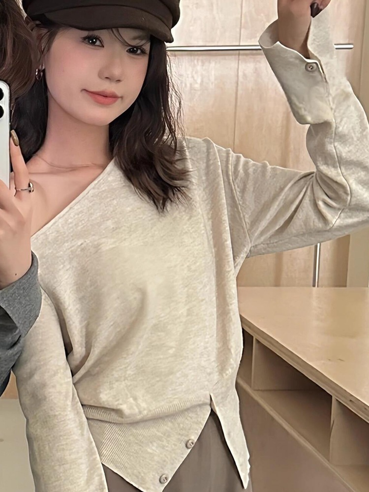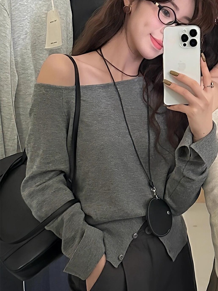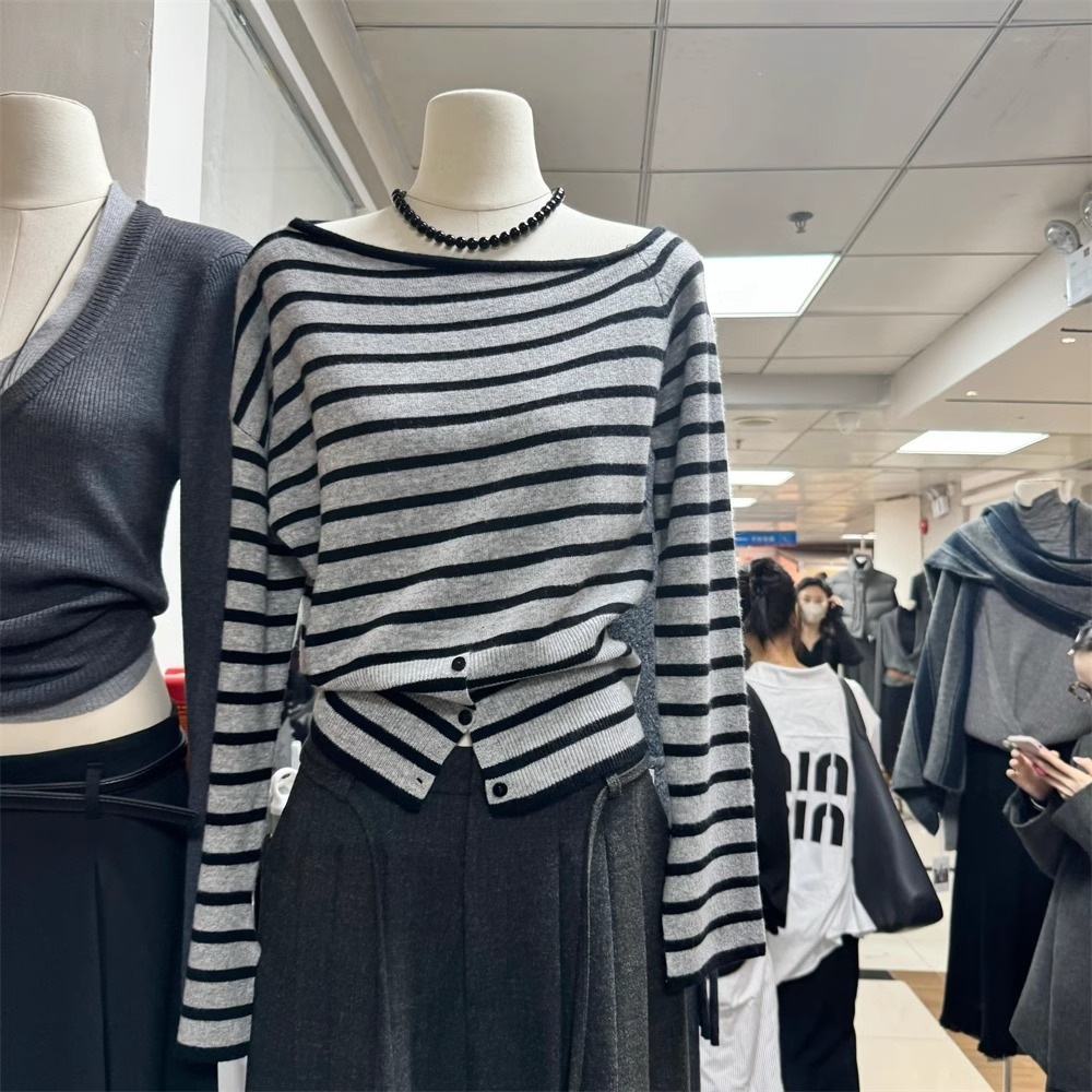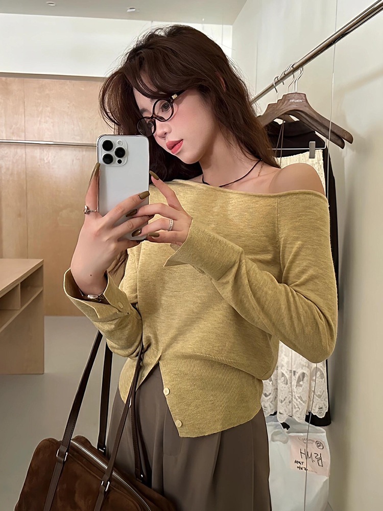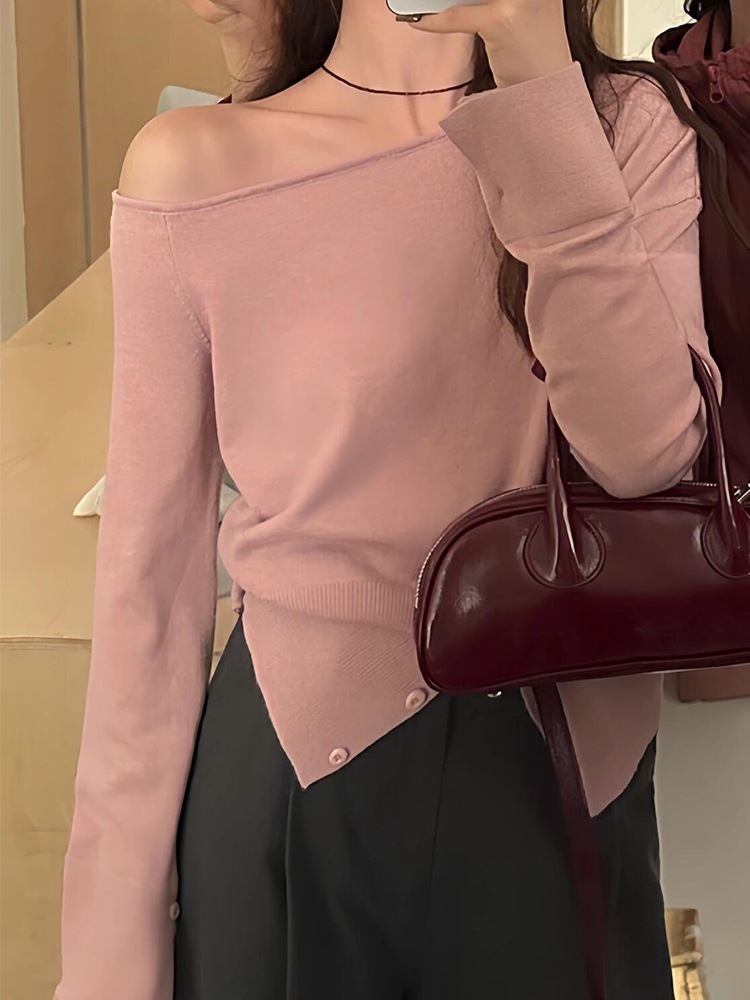 10個セット 2025春秋感斜め肩プルオーバーニットロングスリーブ快適カーディガントップス