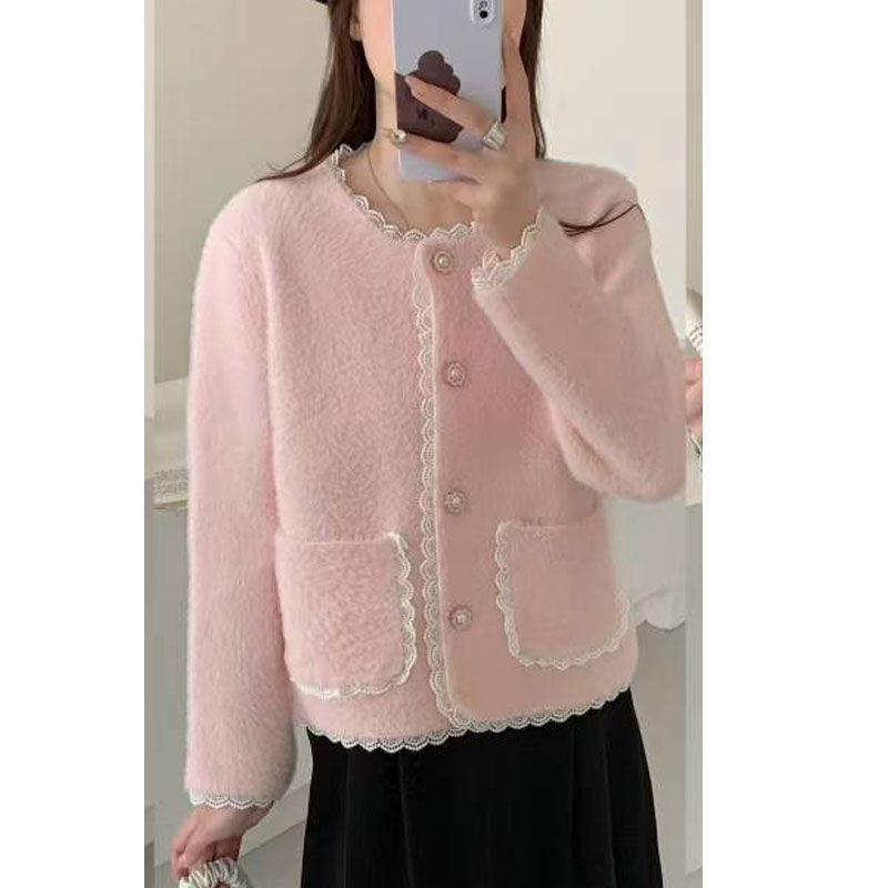 10個セット コート女性秋冬韓国版ゆったりレースクルーネックニットカーディガントップス洋風