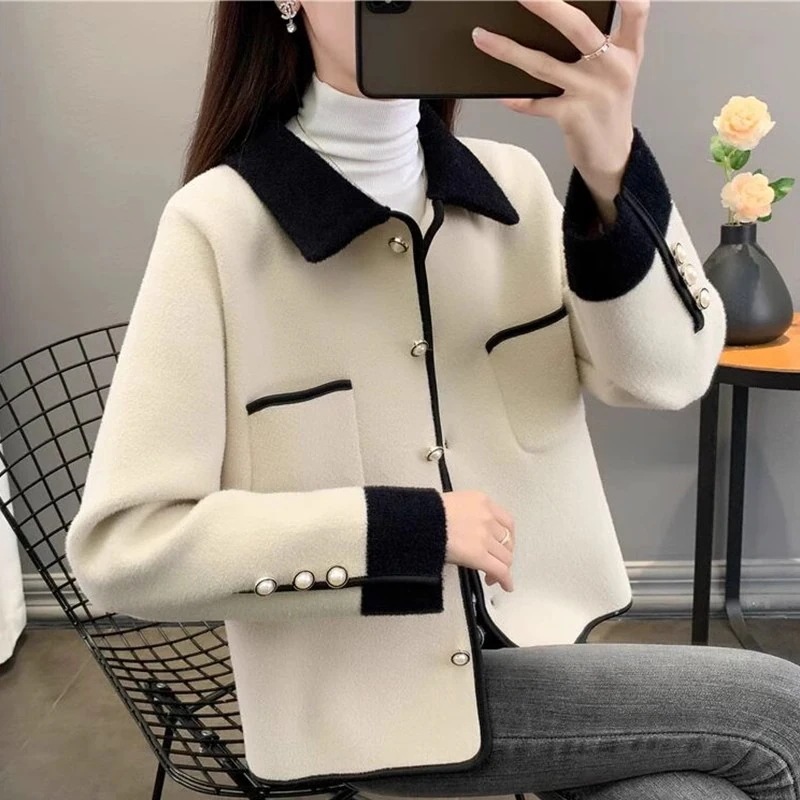 10個セット カラーウールのコート女秋冬2025小柄スクエアネックゆったり長袖トップス
