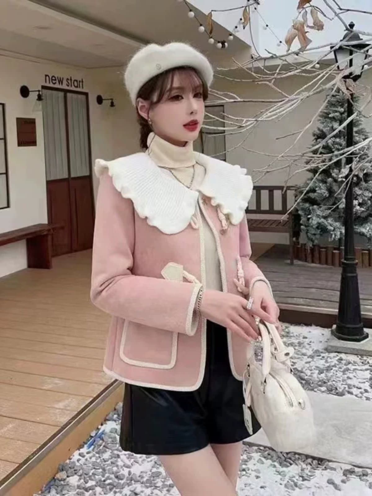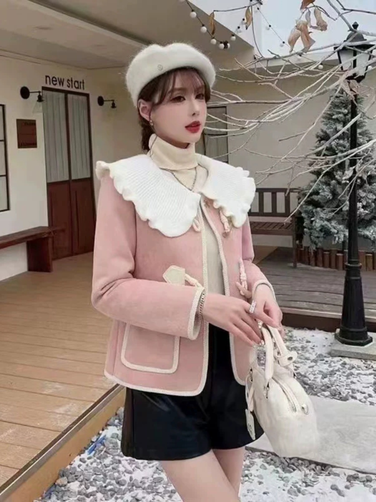 10個セット ショートコート女2025春秋甘め気質ドールネックゆったり着やせコートトップス