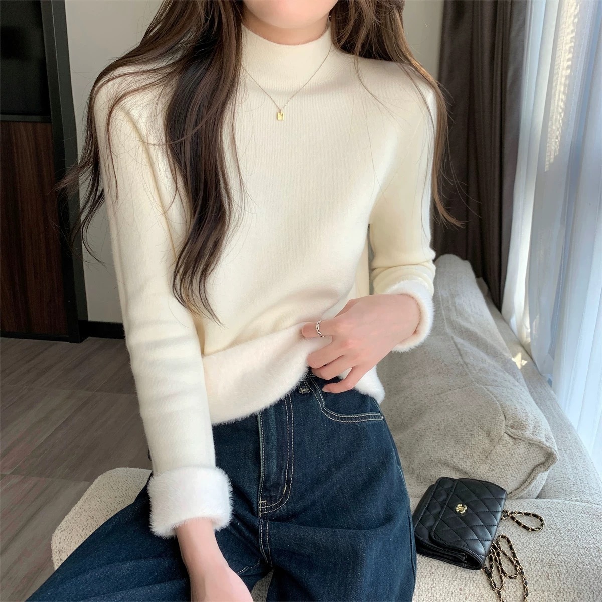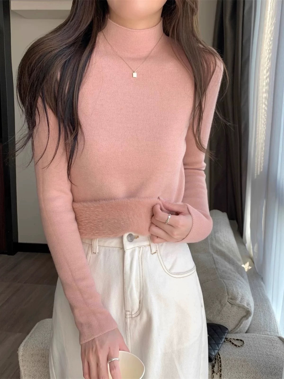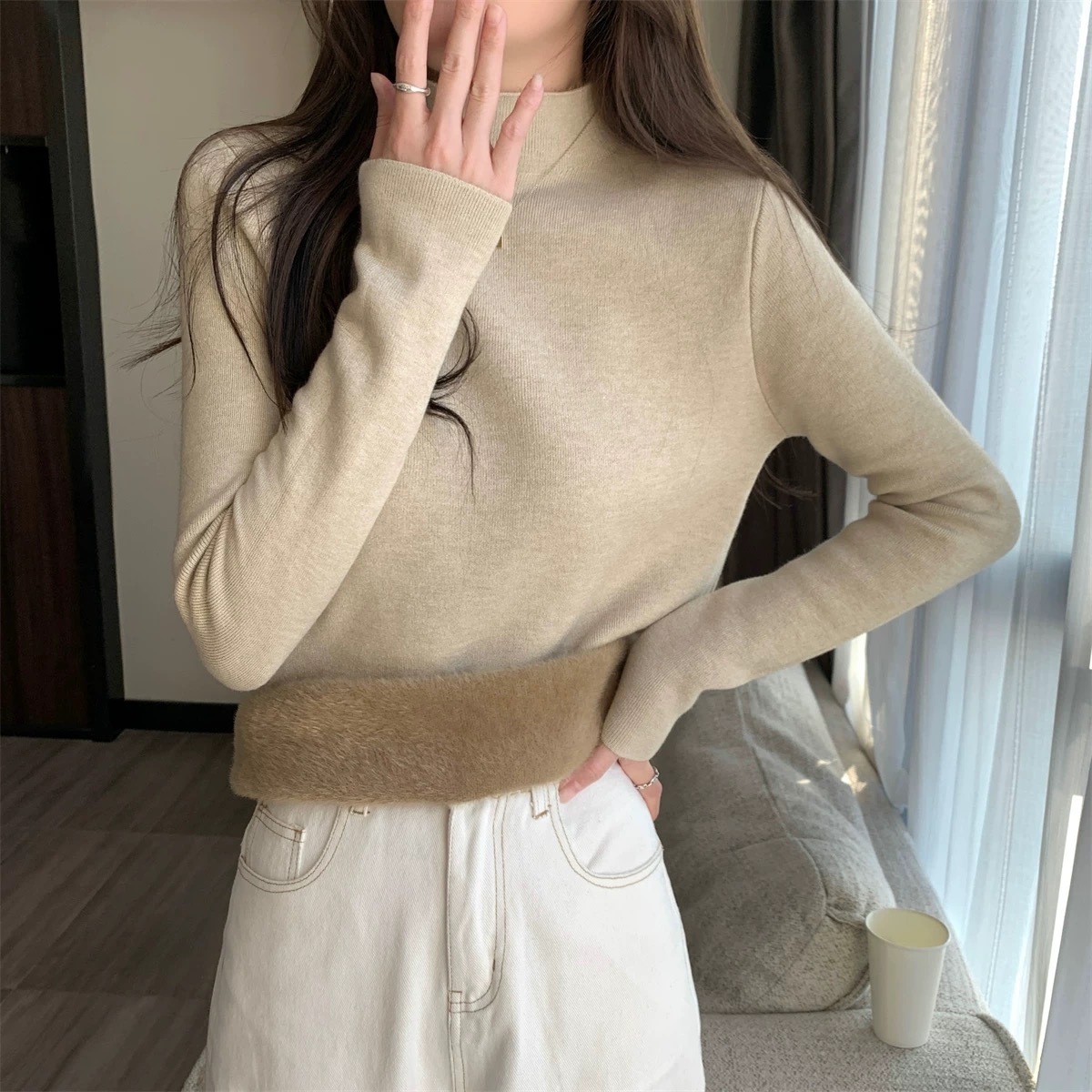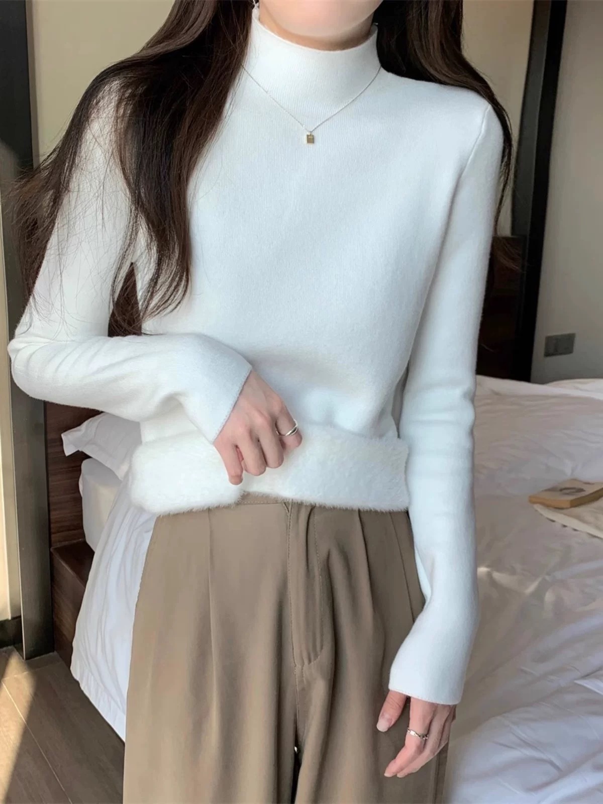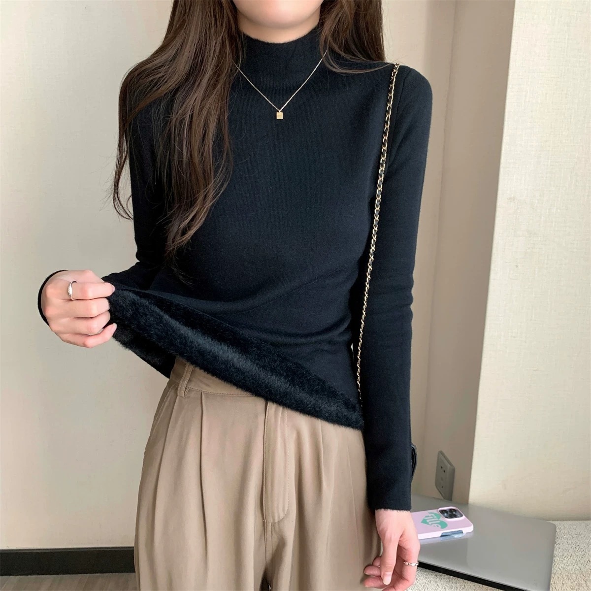 10個セット ハーフハイネックプラス厚手一体ニットカーディガン2025秋冬韓国版シンプルインナーセーター女