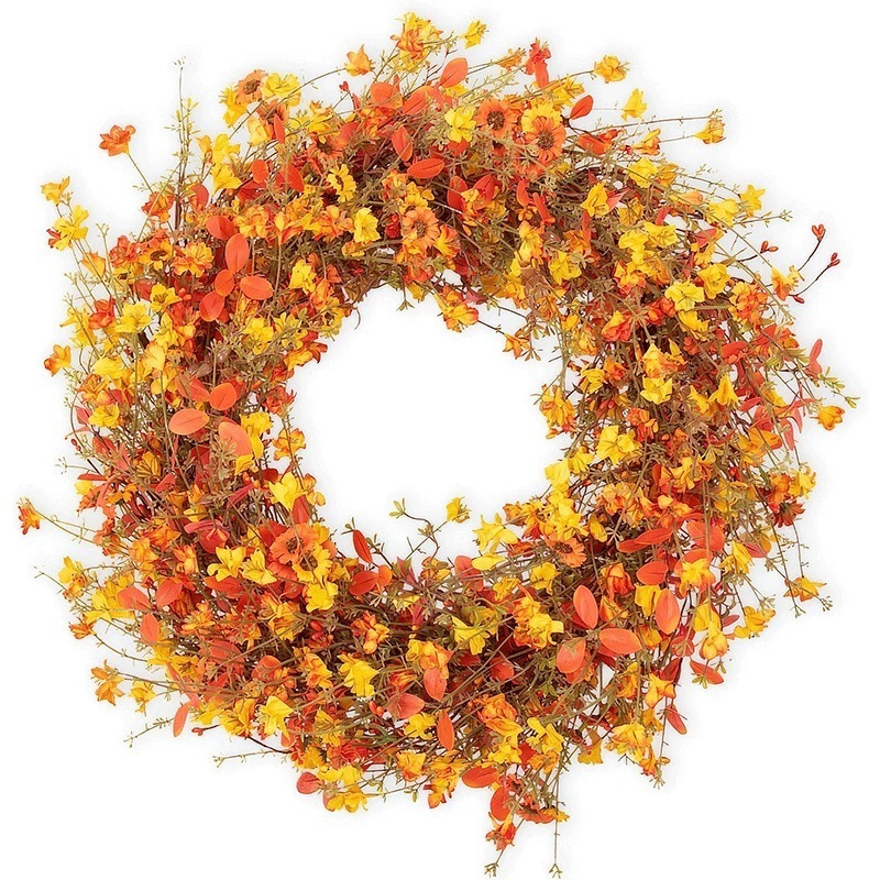 秋の収穫ハロウィン感謝祭のドア飾り黄色とオレンジのベリーフラワー藤の籐の吊り下げオーナメント
