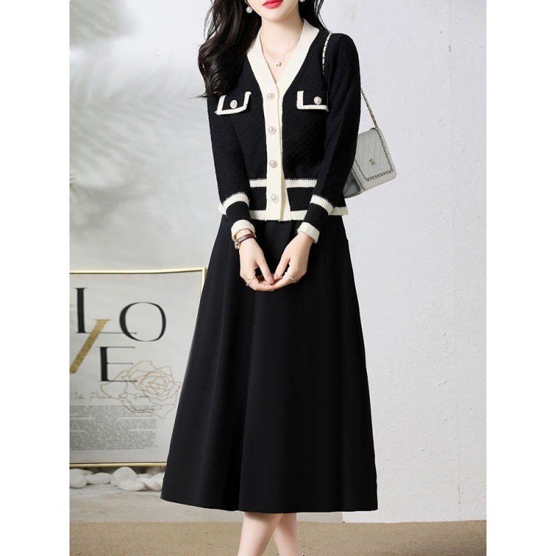 レディースツーピースドレスセット2025年秋洗練されたスタイリッシュでシックな長袖スーツドレス