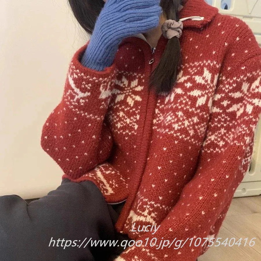 クリスマス セーター ト レディース ニット トップス 長袖 クリスマスプレゼント サンタコスプレ レディースファッション トップス ニット ニットパーカー フーディー ノルディック柄 韓国