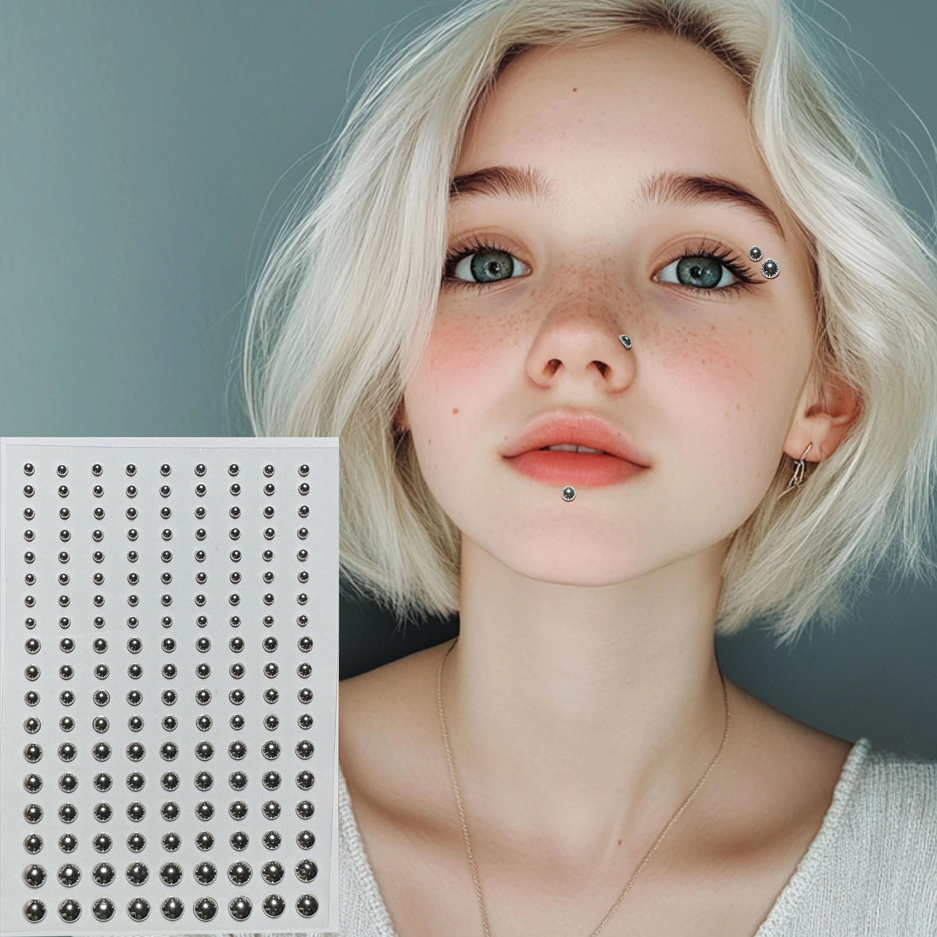 2+1枚,3+2枚108個 貼るピアス ノンホールピアス フェイクピアス ピアスシール 穴いらず 装着簡単 長持ち おしゃれ 男女兼用 顔面デコ用 唇釘 眉釘 口ピ ゴシック ハロウィーンデコ