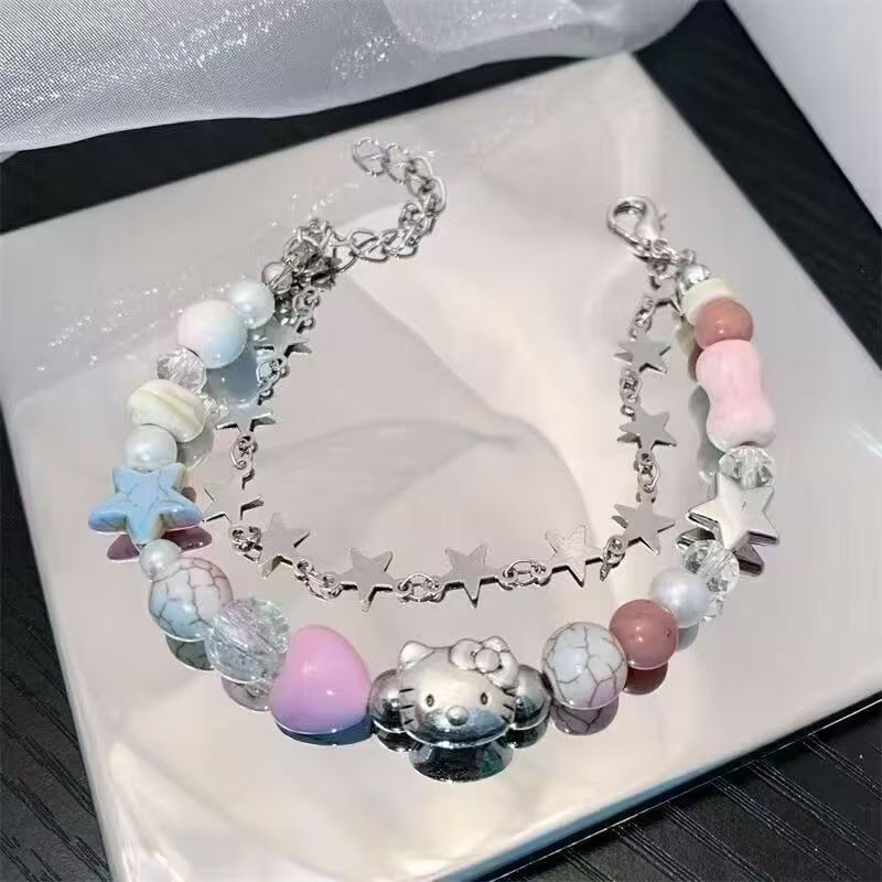 キラキラ 人工ビーズブレスレット スパークリングスター ブルービーズ ブレスレット アジャスタブルデザイン パーティー 宴会 インスタ映え おしゃれ
