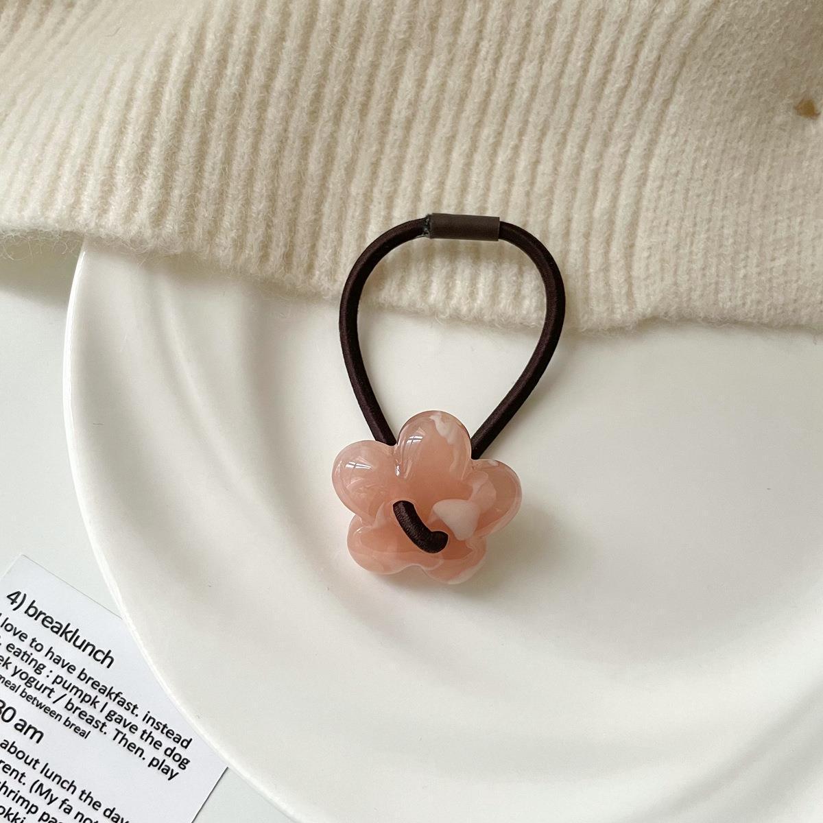 かわいい小花の髪紐が清新でシンプルな気質の頭紐牛革筋百合ゼリー色の小さな皮筋髪飾り女