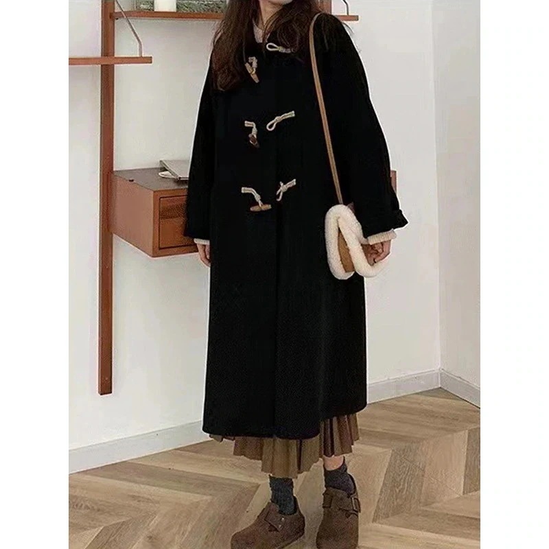 冬アウター トレンチコート 黒毛和牛角バックルツイードコート女性秋冬新作小厚手カレッジ風ツイードジャケット 大人っぽチェスターコート