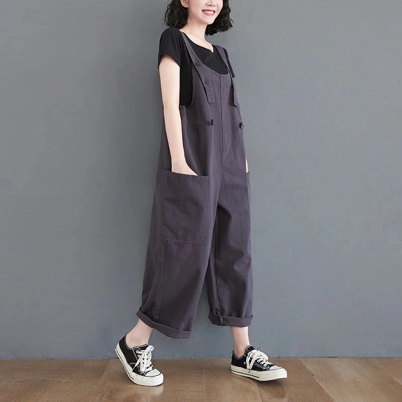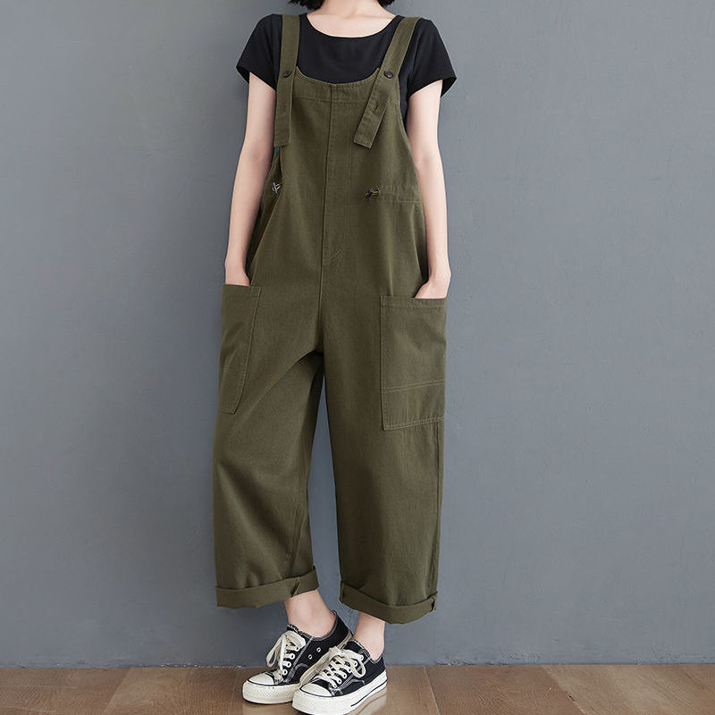 ワイドジャンプスーツ 百掛け サロペット時短コーデ韓国ファッション春プラスサイズ無地