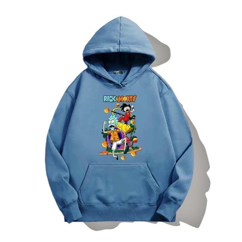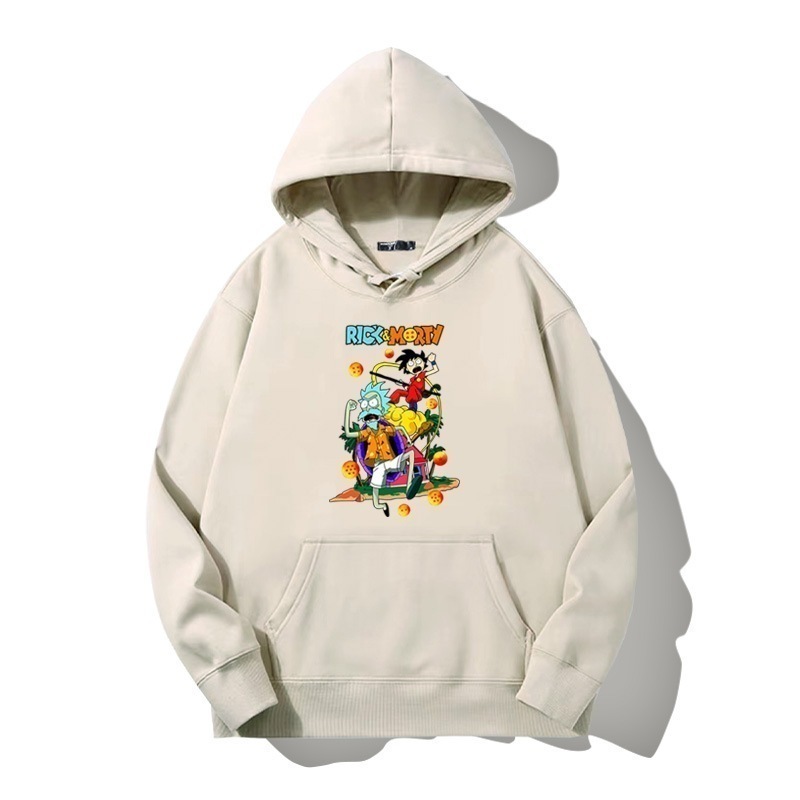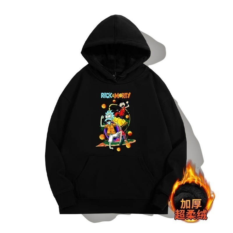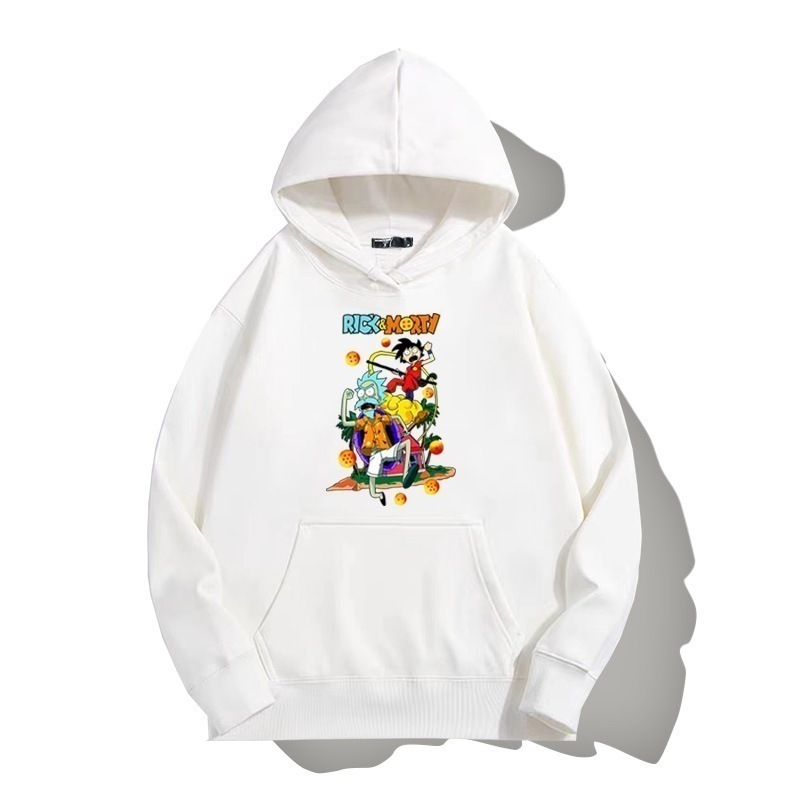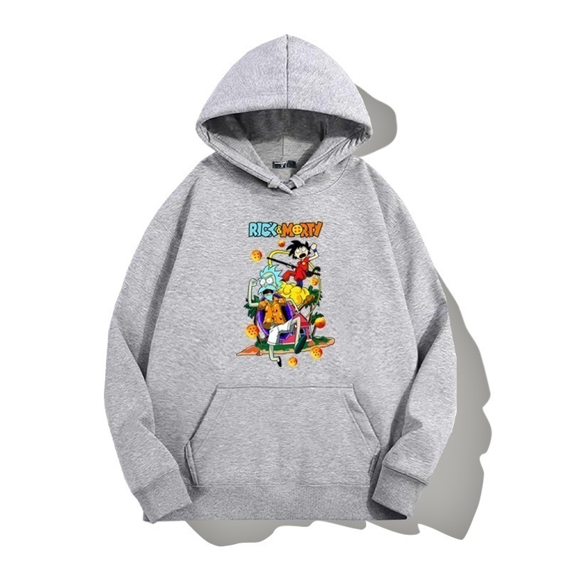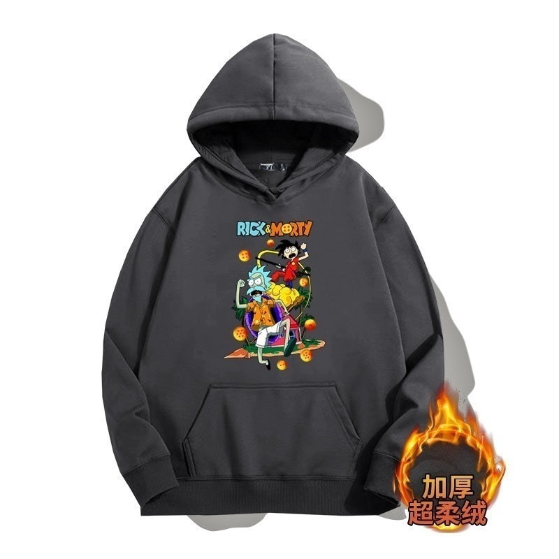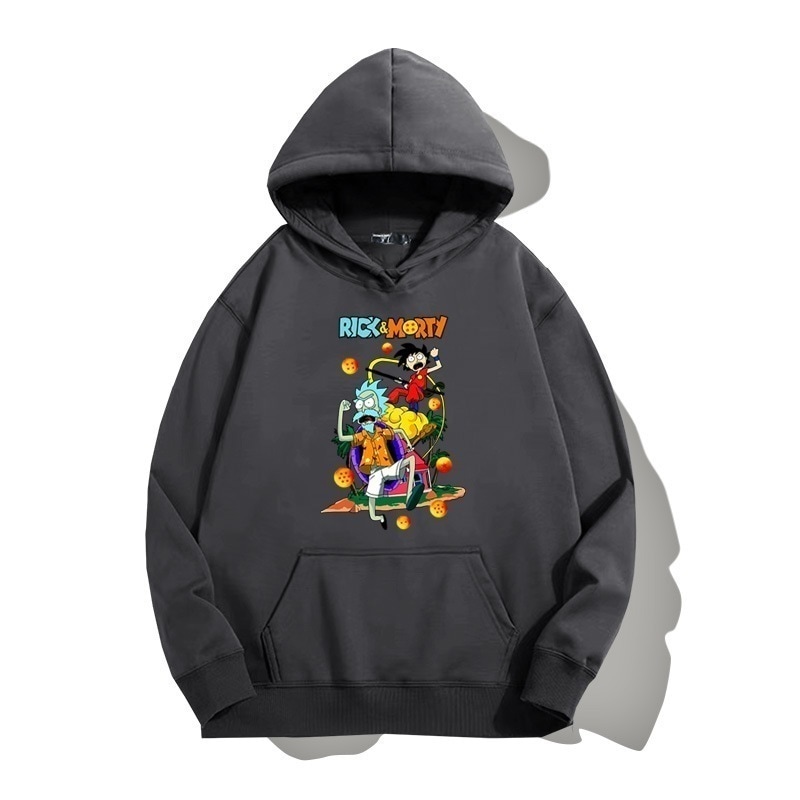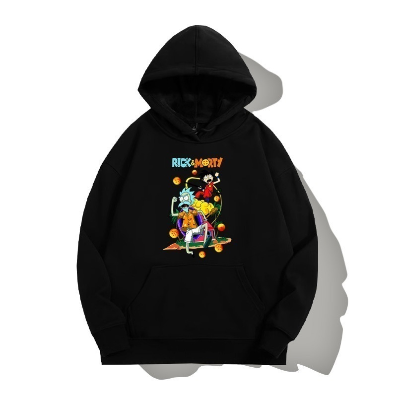 ドラゴンボールとの共同ブランドのリックとモーティのフード付きプルオーバースウェットシャツ男性と女性用秋の若者のトレンディなブランドゆったりとした肩の長さー