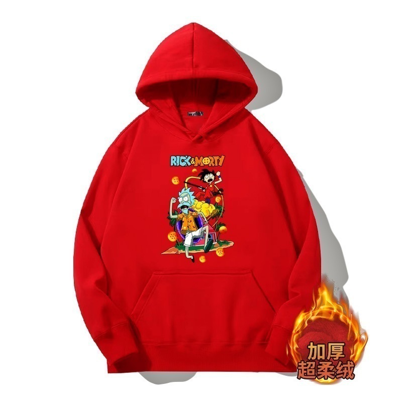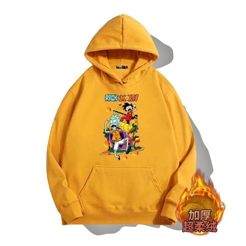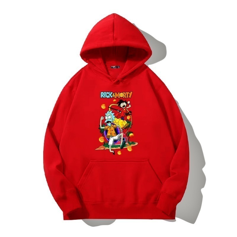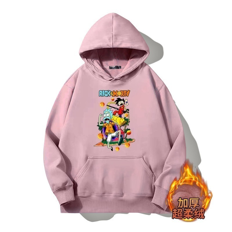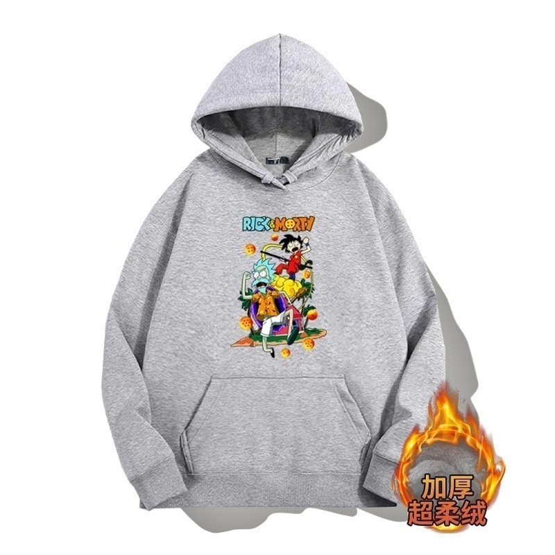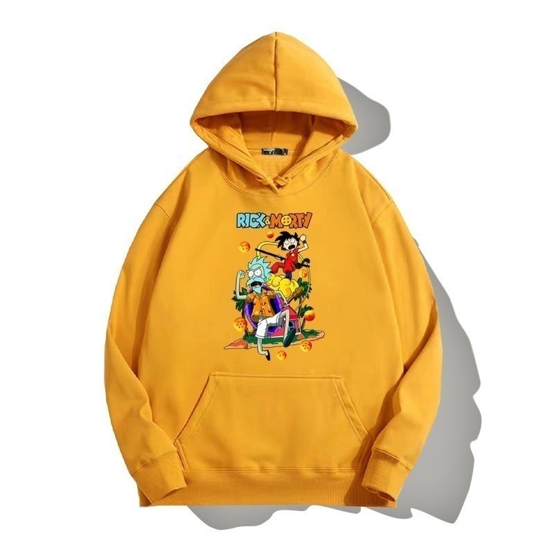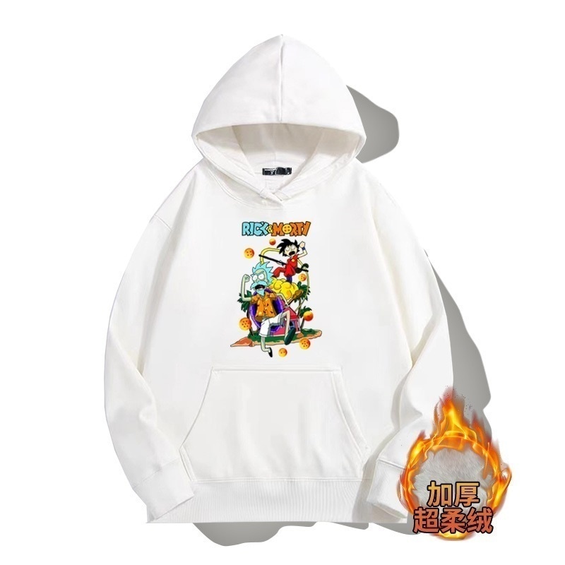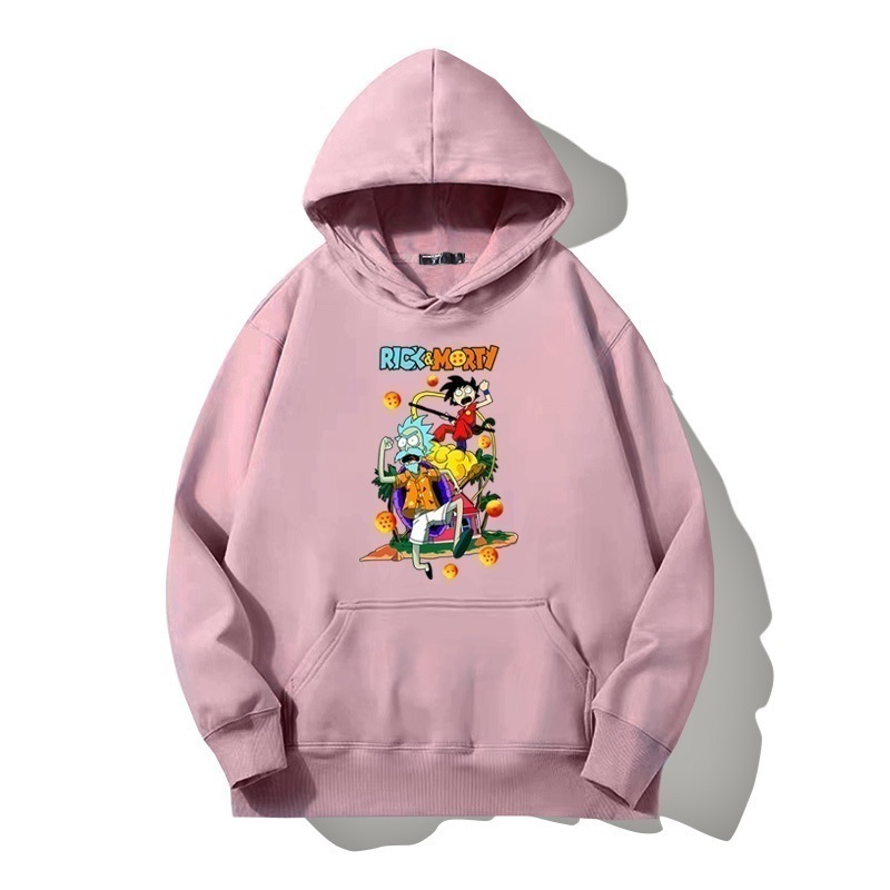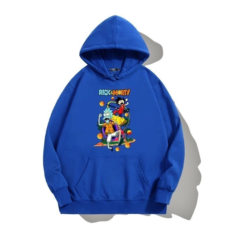 ドラゴンボールとの共同ブランドのリックとモーティのフード付きプルオーバースウェットシャツ男性と女性用秋の若者のトレンディなブランドゆったりとした肩の長さー