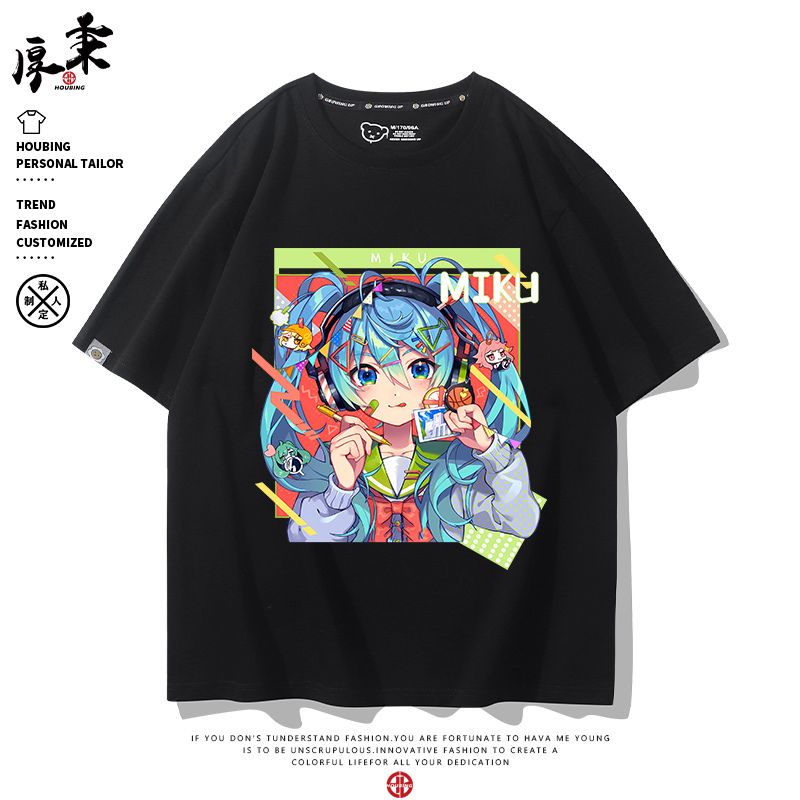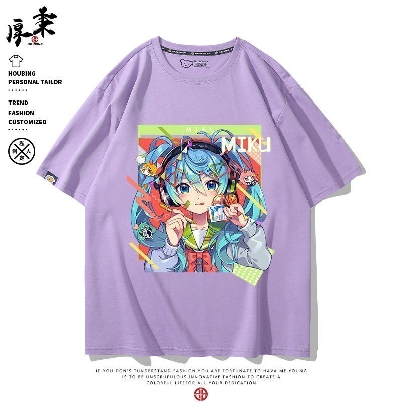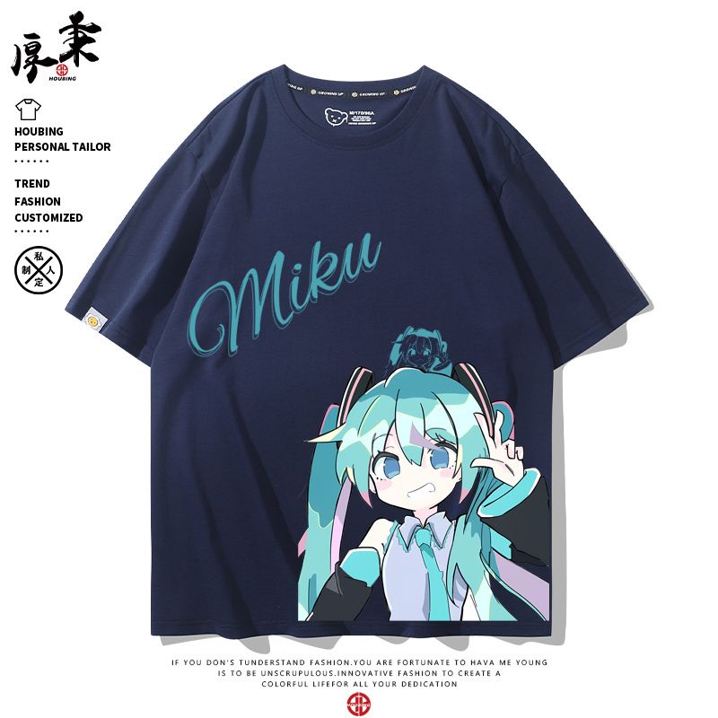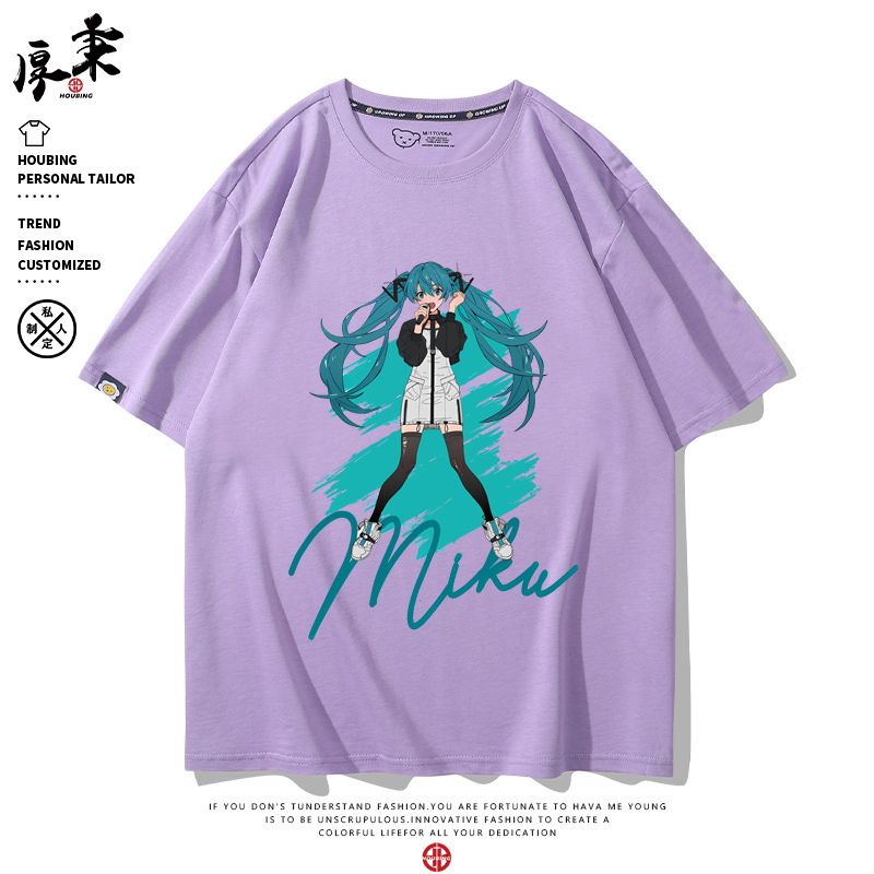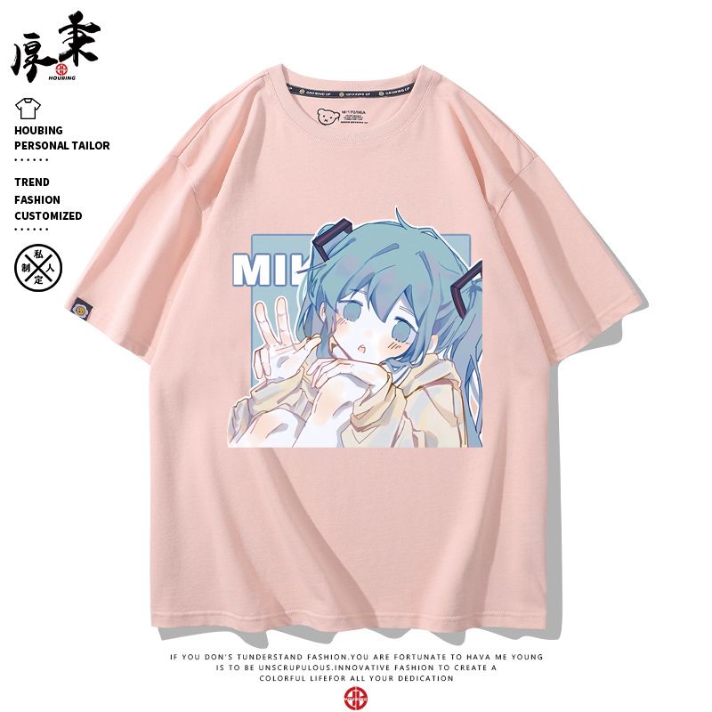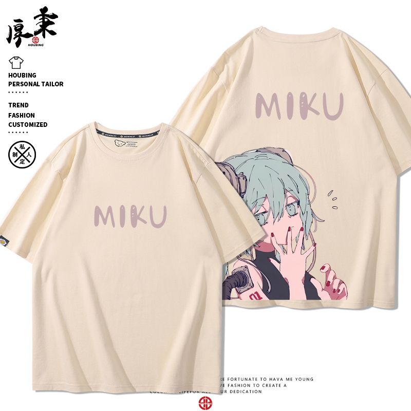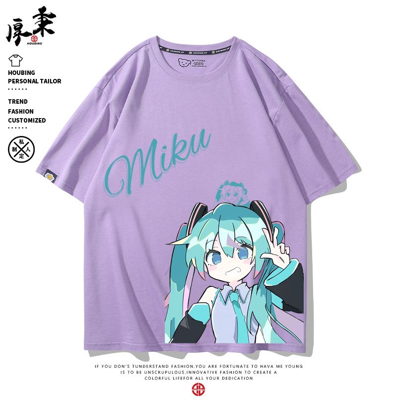 初音ミク周辺半袖tシャツアニメmiku男女cos純綿服ゆるいカップル上着ー