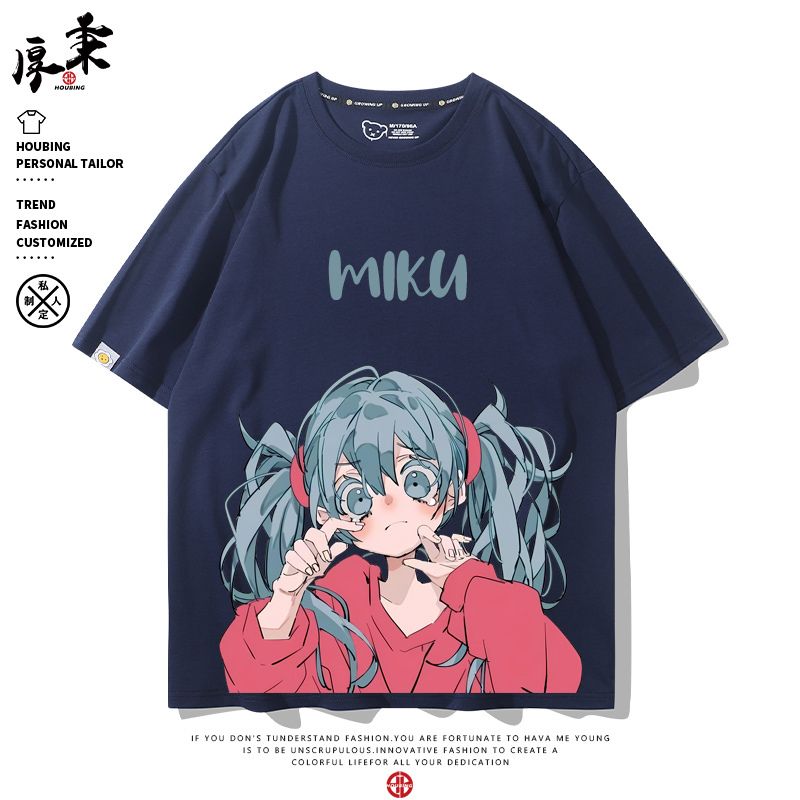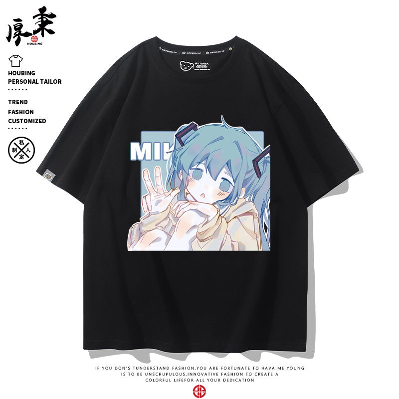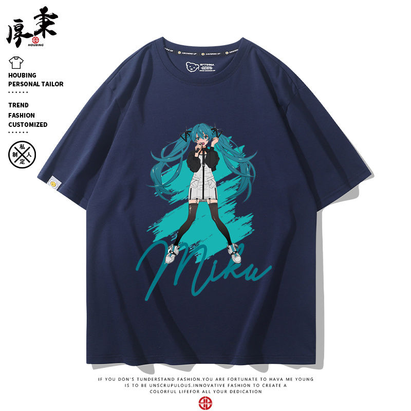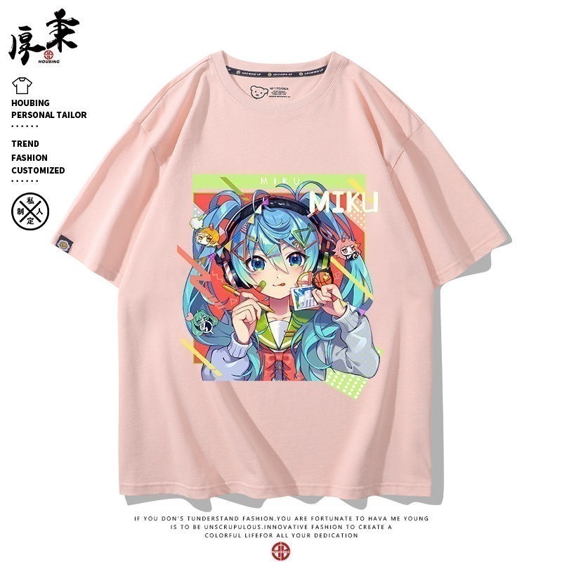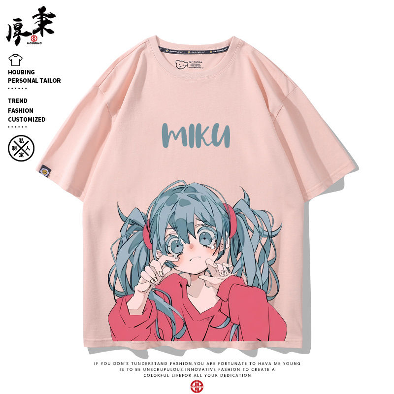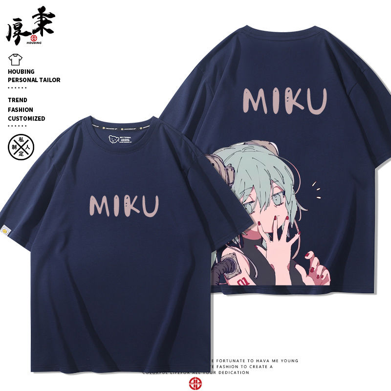 初音ミク周辺半袖tシャツアニメmiku男女cos純綿服ゆるいカップル上着ー