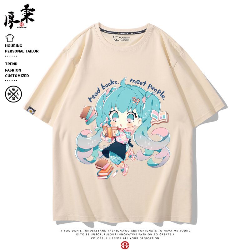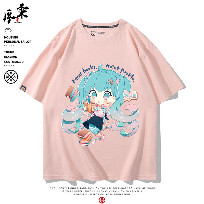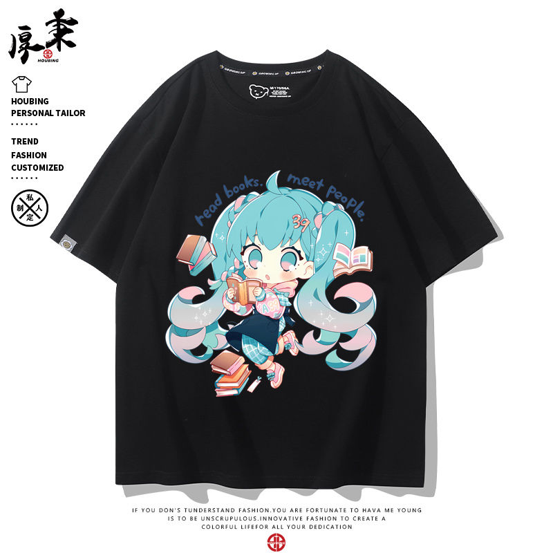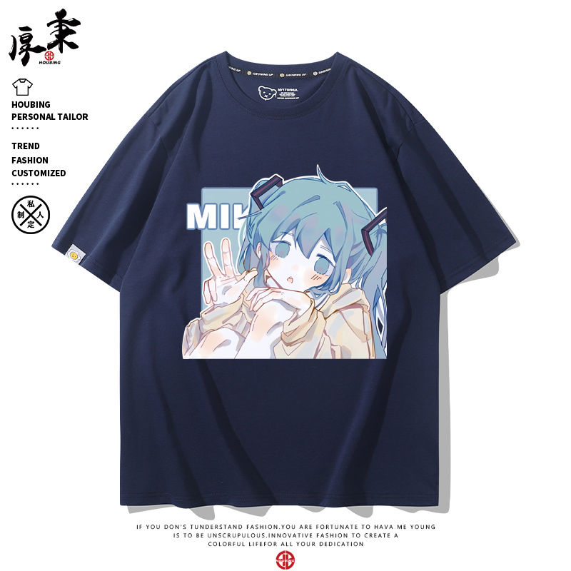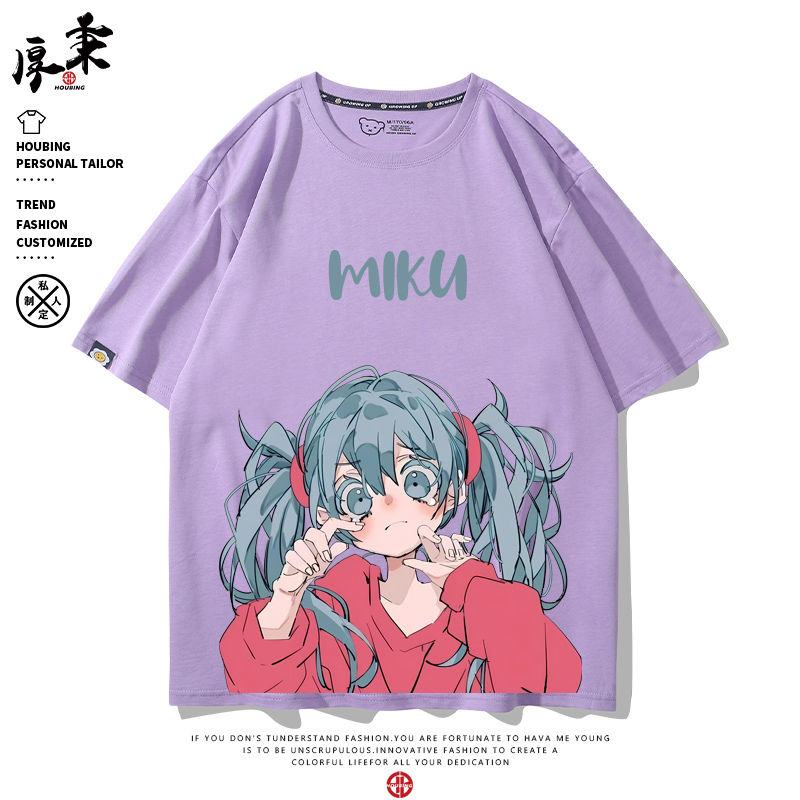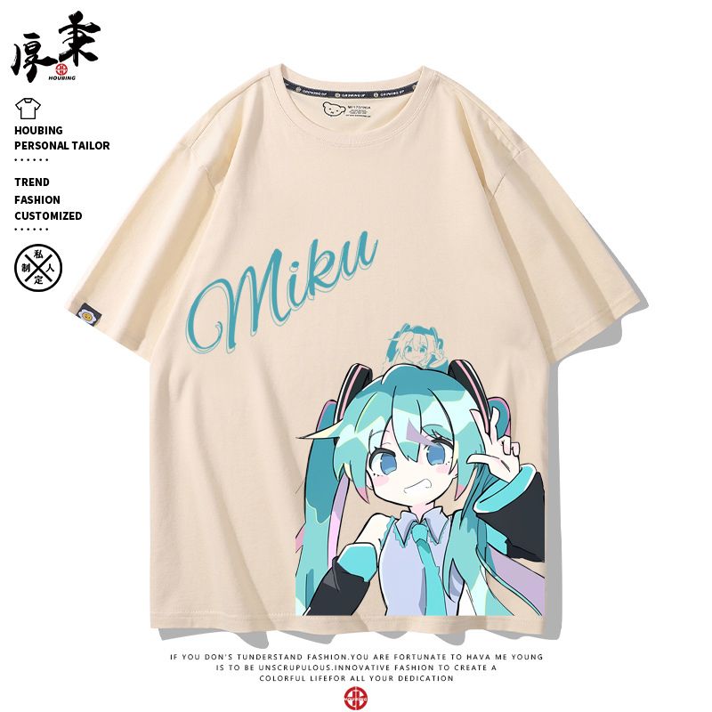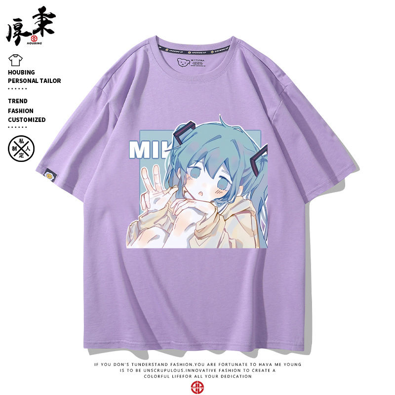 初音ミク周辺半袖tシャツアニメmiku男女cos純綿服ゆるいカップル上着ー