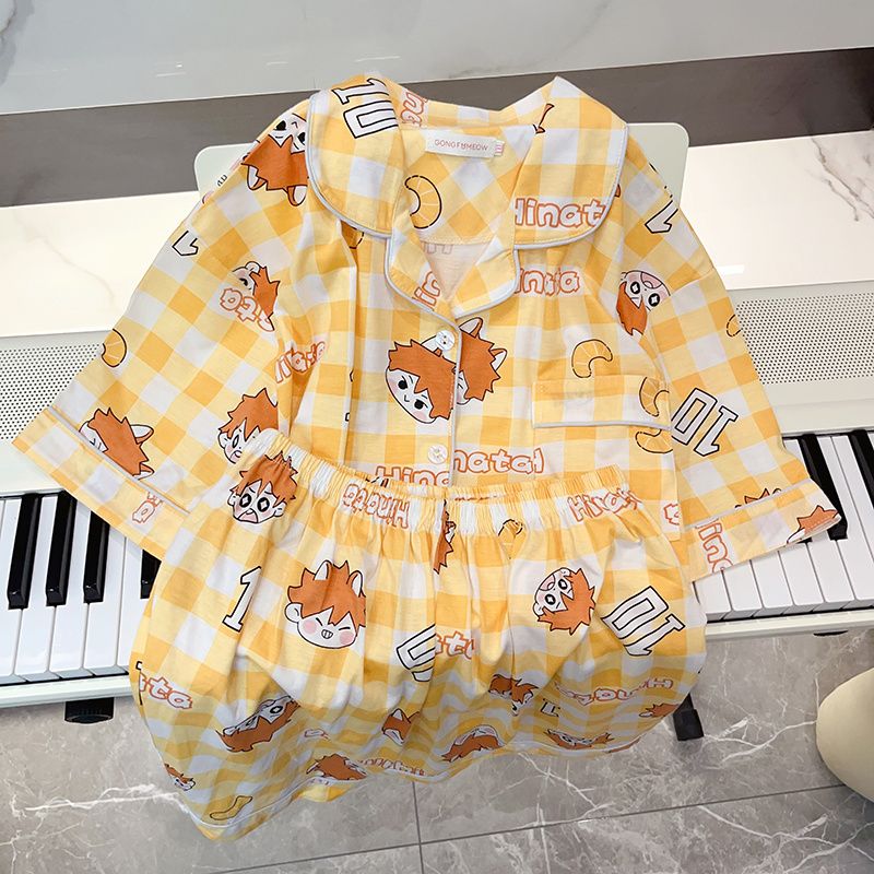 バレーボール少年日向翔陽 & 影山飛雄パジャマ女性夏綿半袖パンツアニメ夏セットー