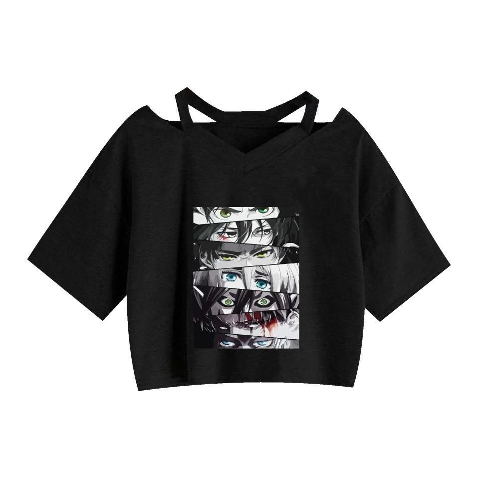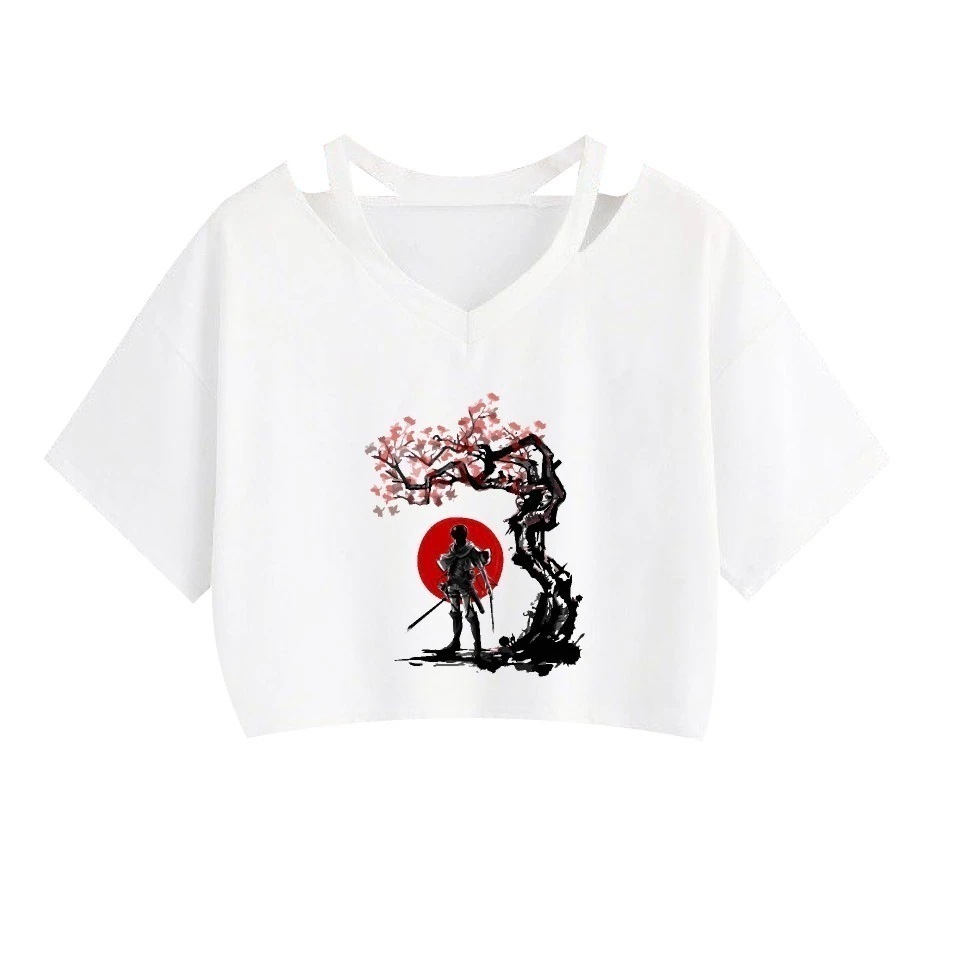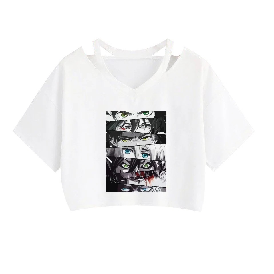 Tシャツ夏のファッションサスペンション底付けへそ出し半袖進撃の巨人周辺売れ筋プリントー