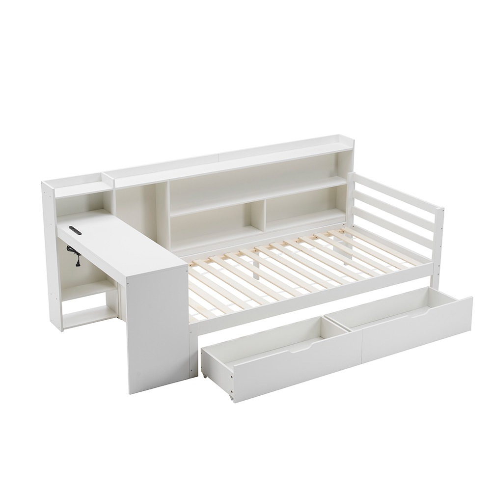 システムベッド 頑丈 階段 天然木 パイン材 収納 シングル ラック 引き出し デスク付き コンセント付き 北欧風 大人 一人暮らし ベッド 木製 ホワイト