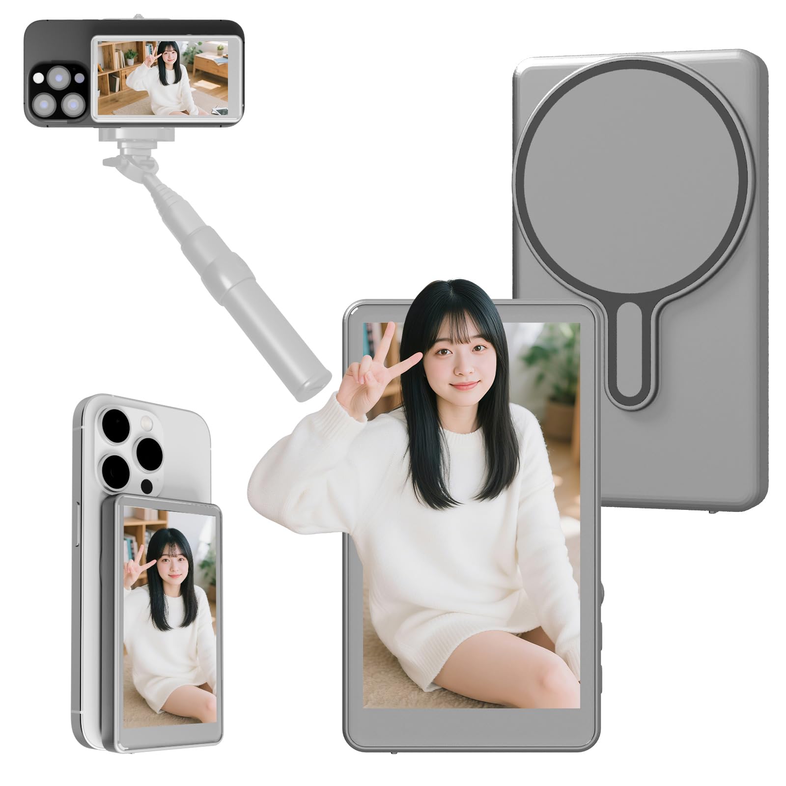 自撮りモニター 4K1080P iOS/Android スマホの外カメラ画面ミラーリング可能な磁気式ディスプレイBluetooth撮影ボタン付き 自撮りVlogモニター 自撮り・ライブ配信