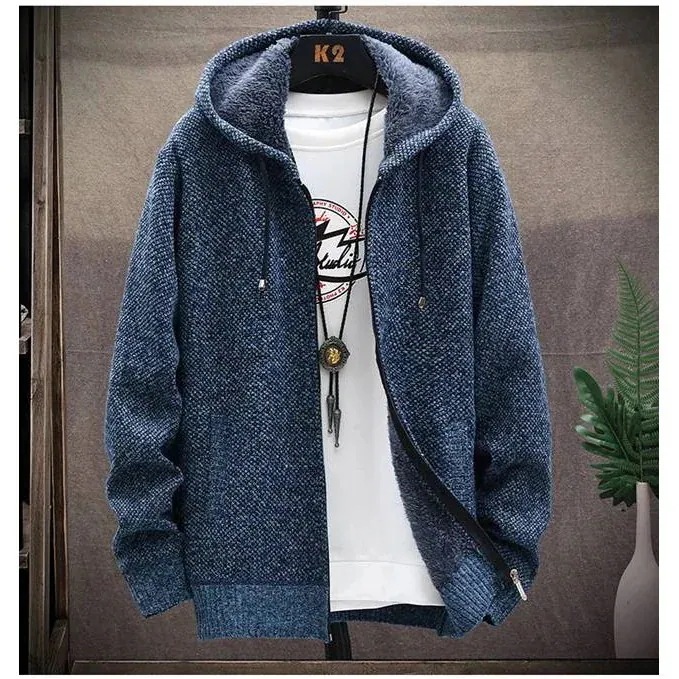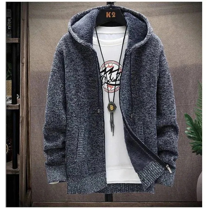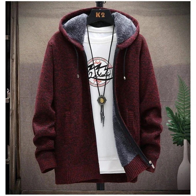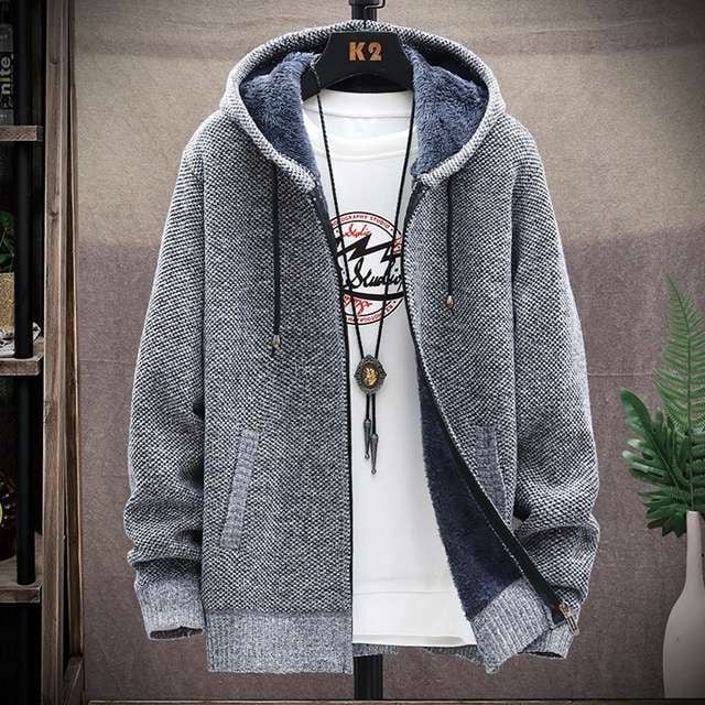 メンズ ニットセーター 厚手 裏起毛 フード付き カーディガン!パーカー風 防寒 ジャケット・アウターとして着用 暖かい着用感