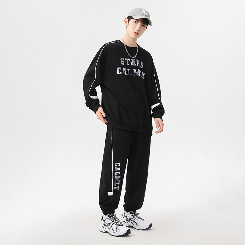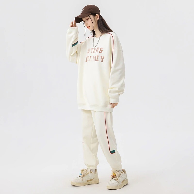 【人気商品】ファッション カジュアル スポーツ カップルスーツ 新作 手紙 プリント ストライプ スプライシング ルーズ 大きいサイズ 2セット
