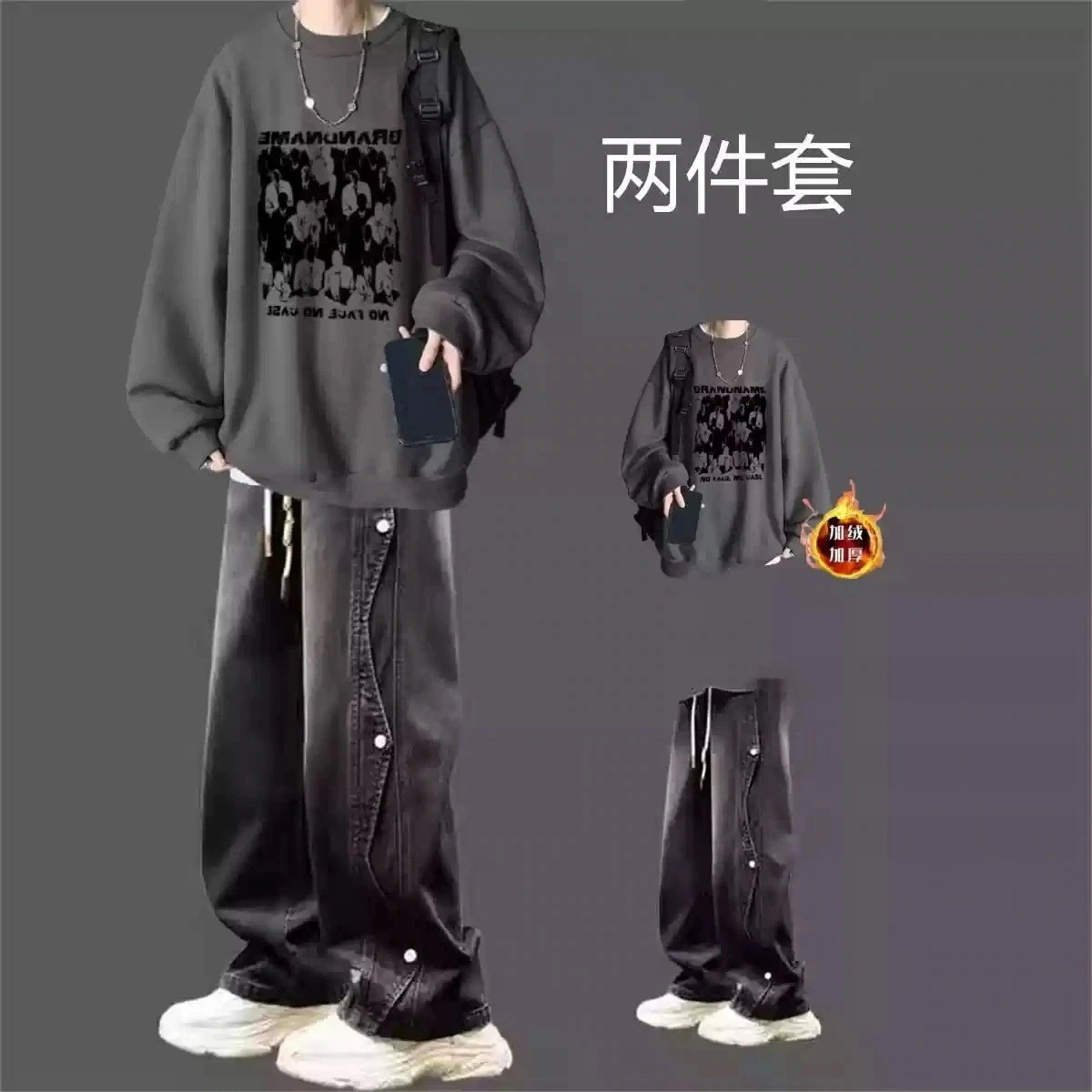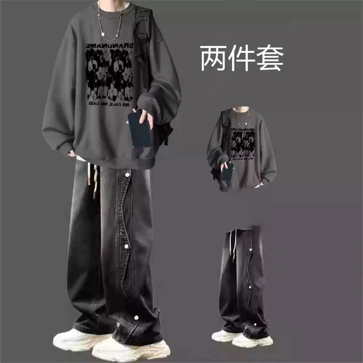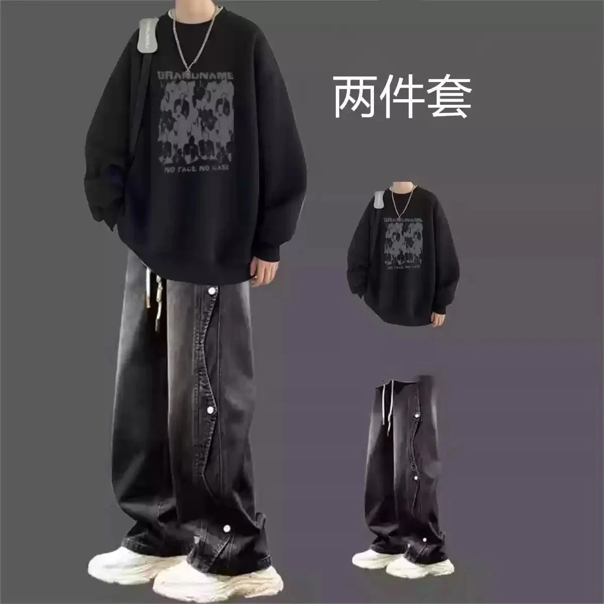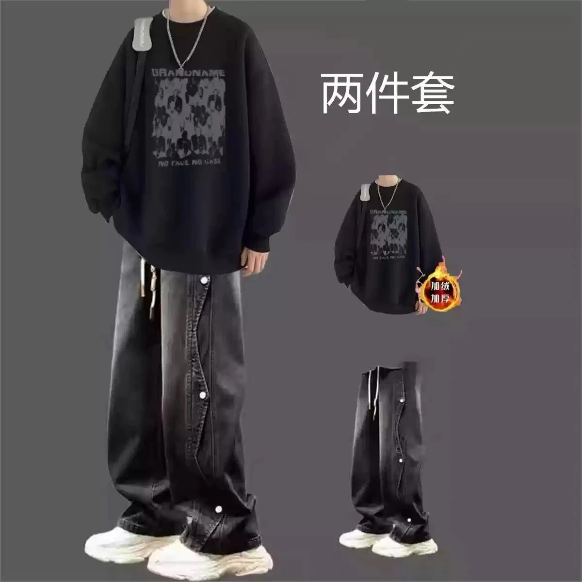 ハイストリート【人気商品】ファッション デザイン ジーンズ セット ボーイズ 秋冬 ルーズ ハイストリート お揃い ティーンエイジャー ツーピース