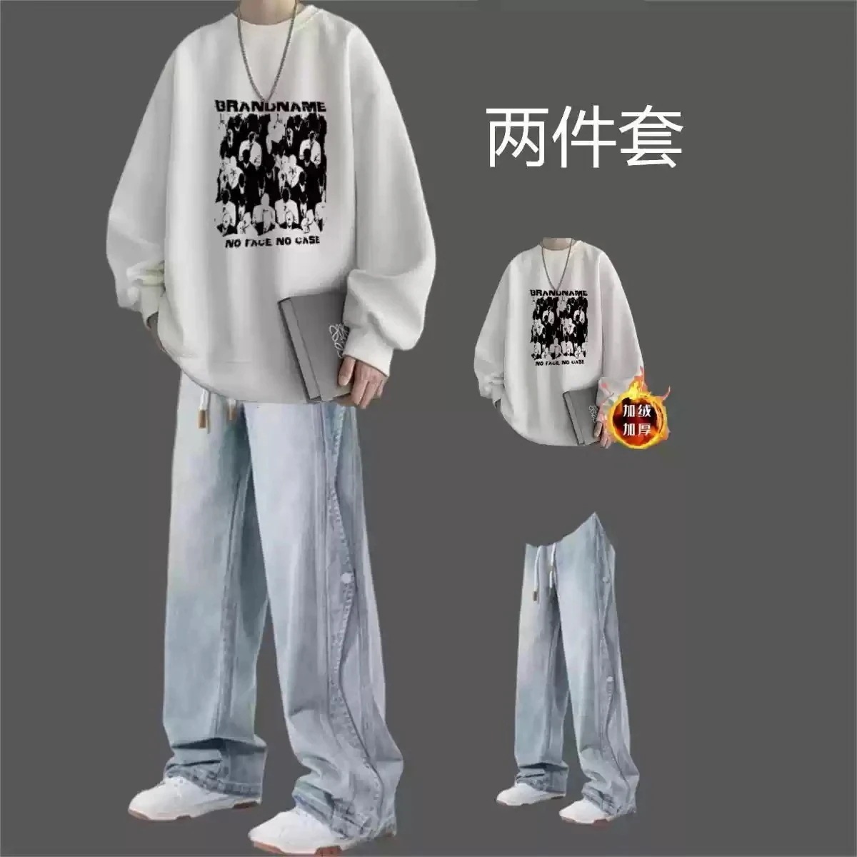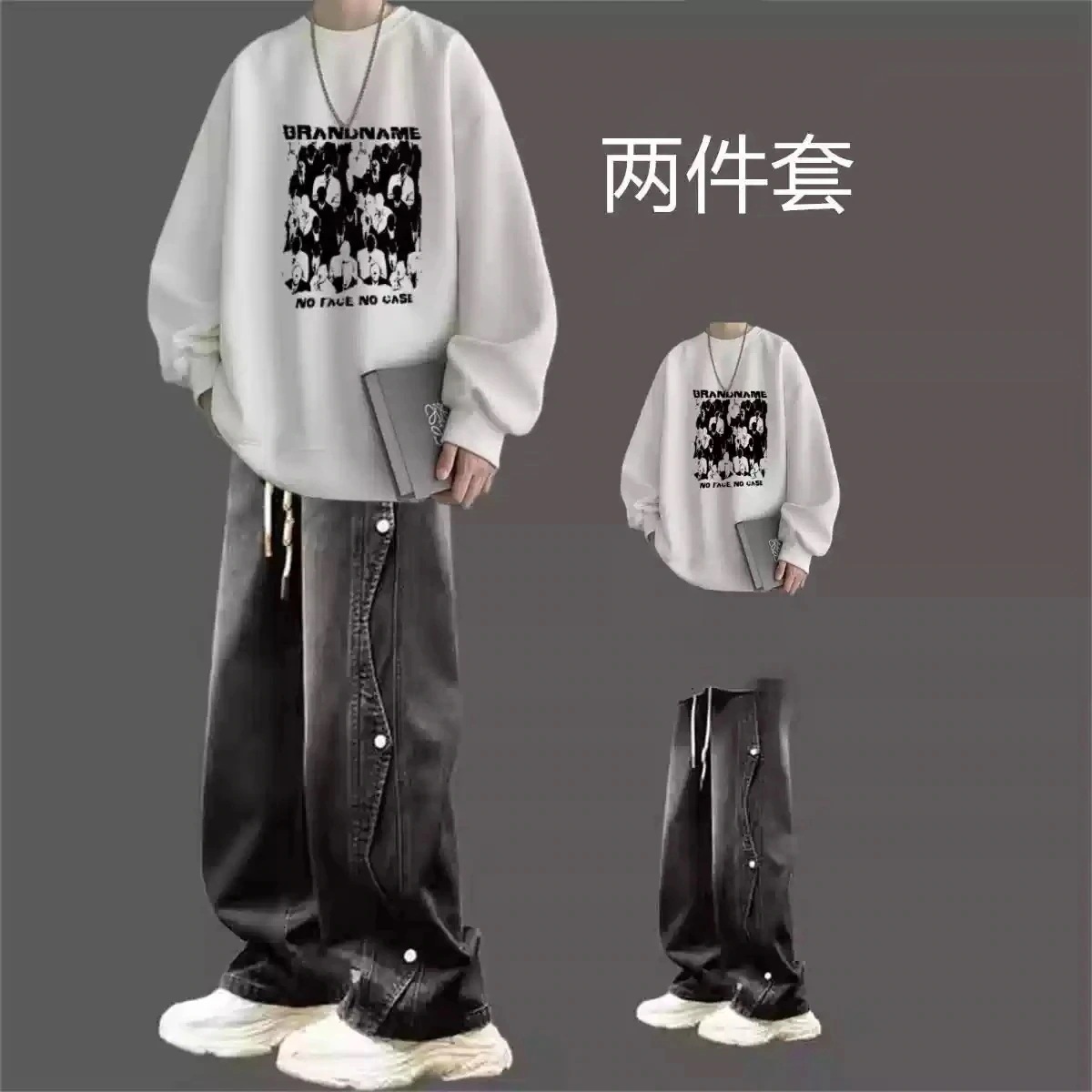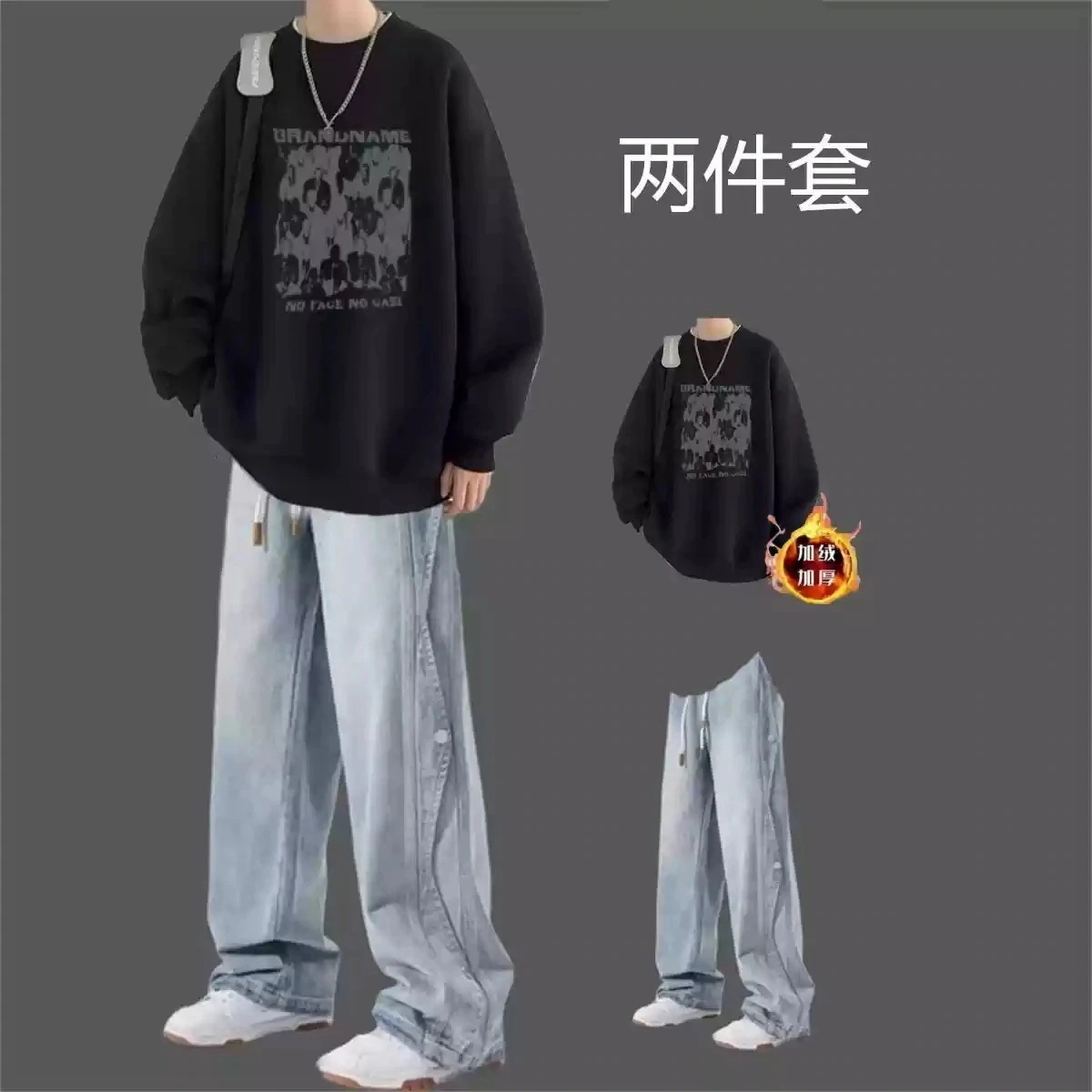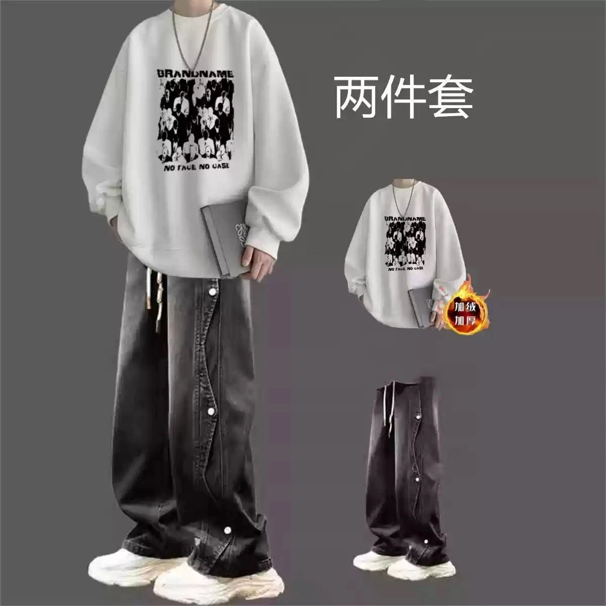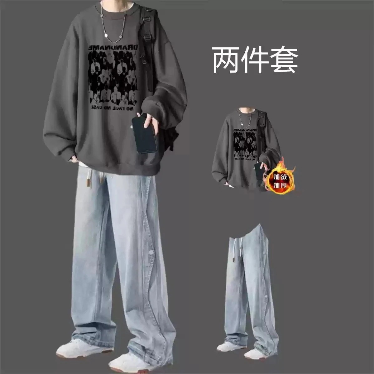 ハイストリート【人気商品】ファッション デザイン ジーンズ セット ボーイズ 秋冬 ルーズ ハイストリート お揃い ティーンエイジャー ツーピース