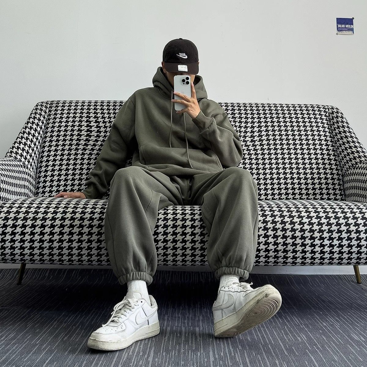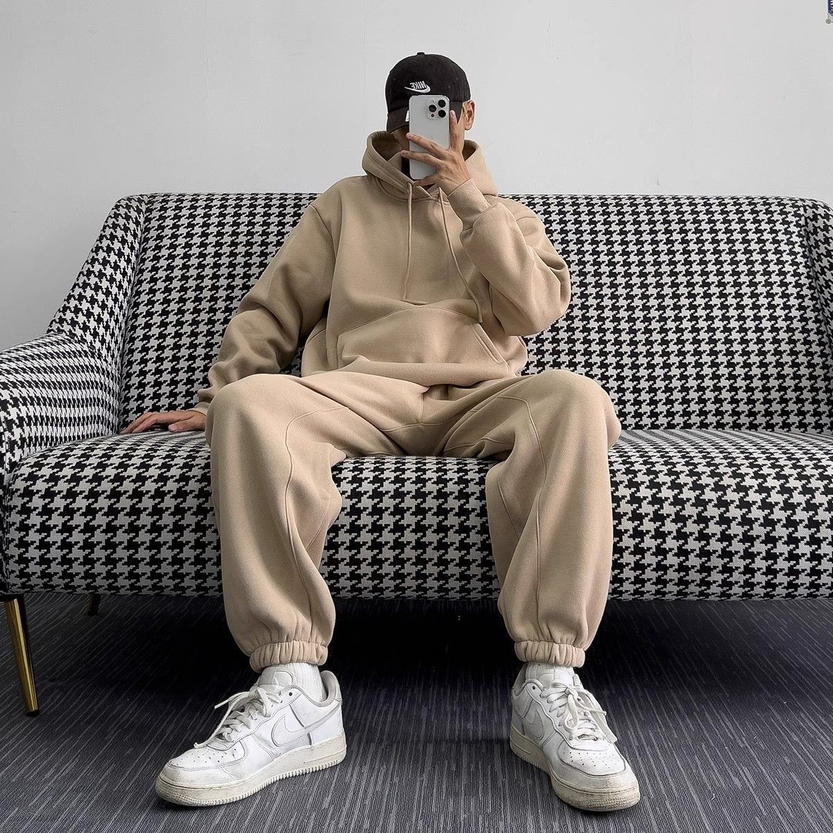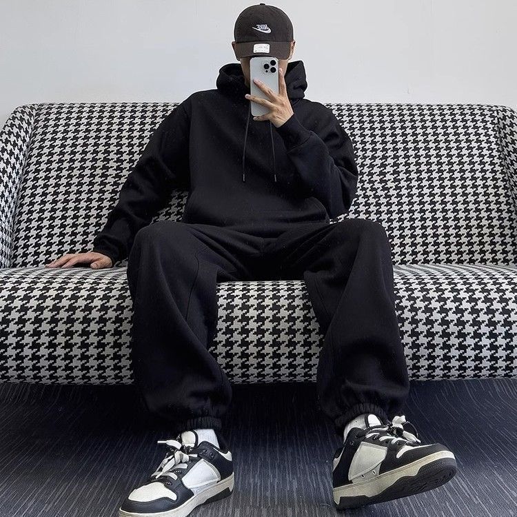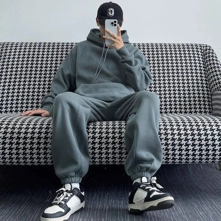 【人気商品】ファッション カジュアル 2セット メンズ 秋冬 シンプル ストリート ルーズ 裏起毛 厚手 スウェットシャツ