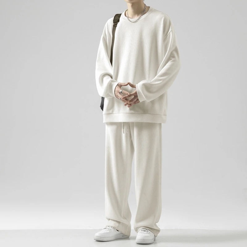 【人気商品】ファッション ラウンドネック スウェットシャツ カジュアル 百掛け ドローストリング カジュアルパンツ メンズ 大きいサイズ スーツ カジュアル ファッション