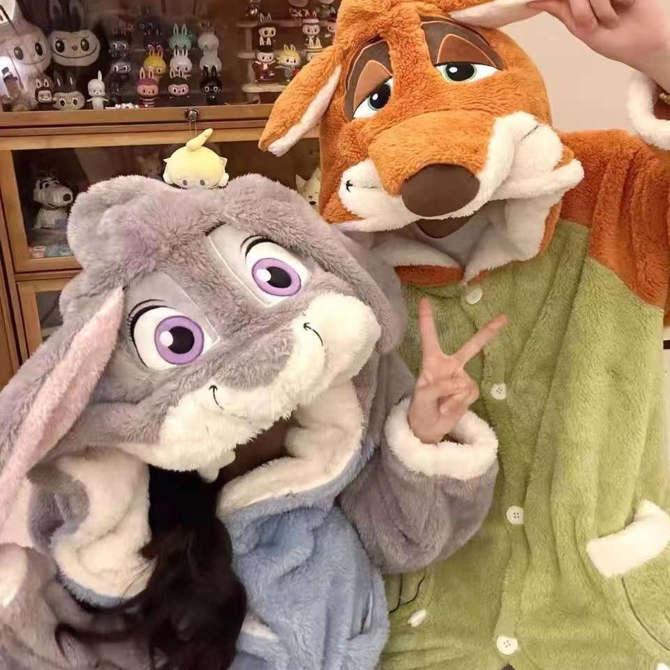 カップルパジャマ 部屋着 コスプレ ルームウェア ズートピアコスプレジュディニックラビットオフィサーコミコンパフォーマンスコスチュームステージコスチュームウサギ警察 ポリス 大人 着ぐるみパジャマ