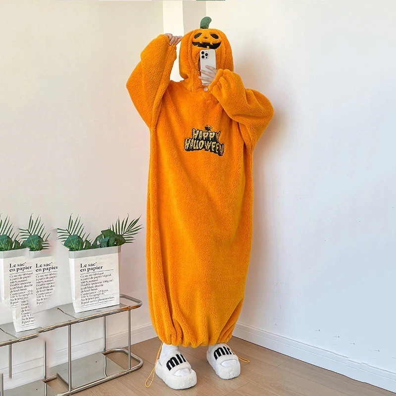 オーバーサイズスウェット 【 ワンピース 韓国風新作コーラルフリースパジャマ 3日以内に出荷 秋冬用パジャマ 】着ぐるみパジャマ ハロウィンかぼちゃヘッドホームウェア