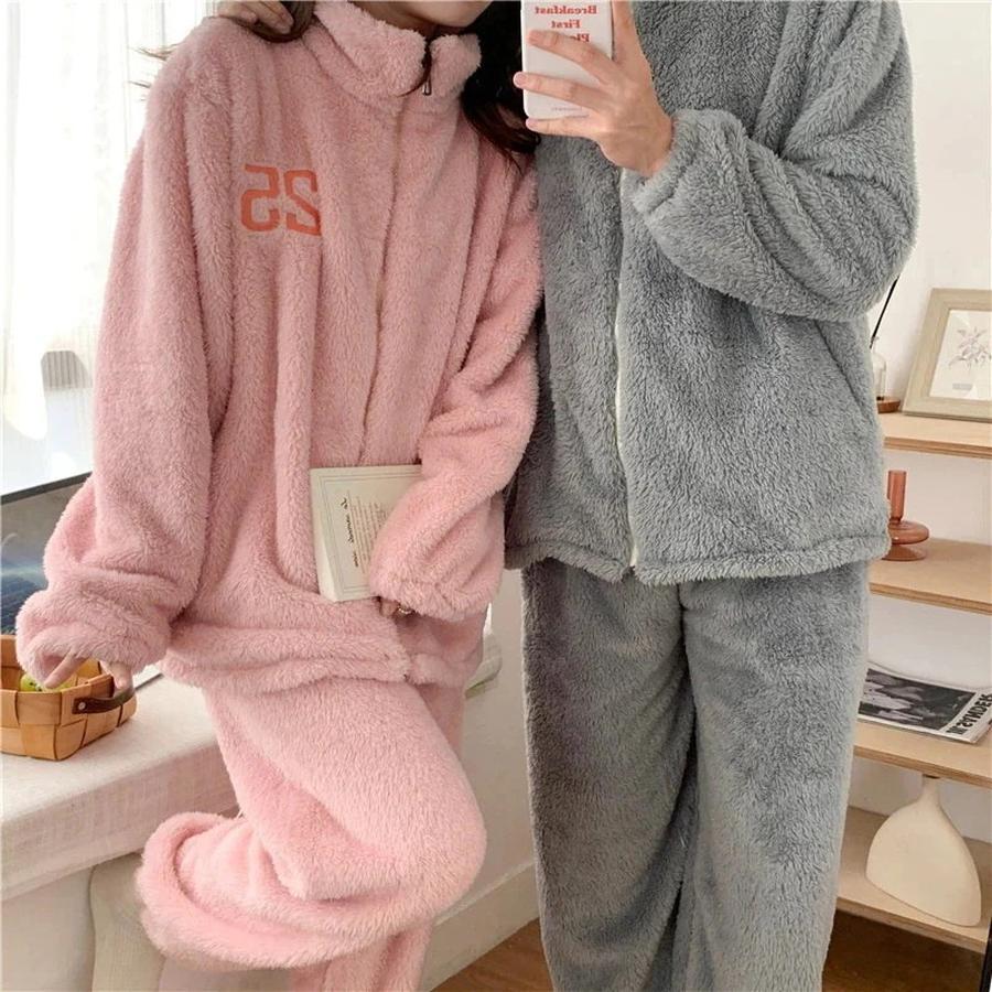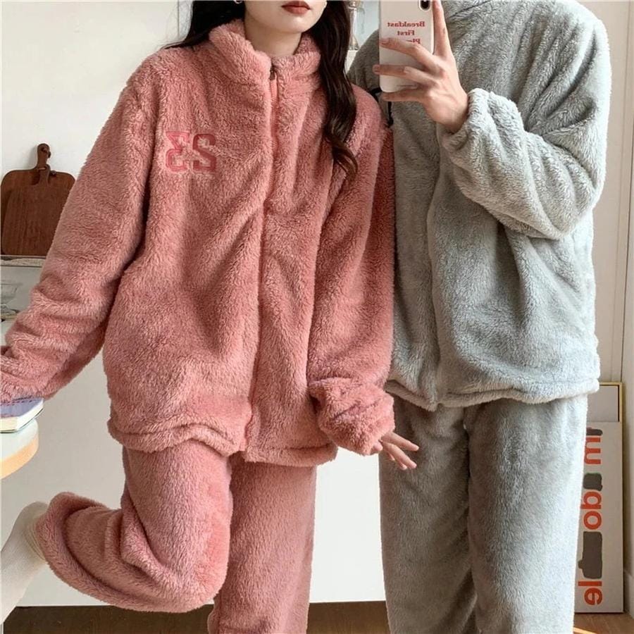 上下セット カップルルック 裏起毛ファッション 裏起毛 フランネル ホームウェア 厚手 パジャマ 冬部屋着