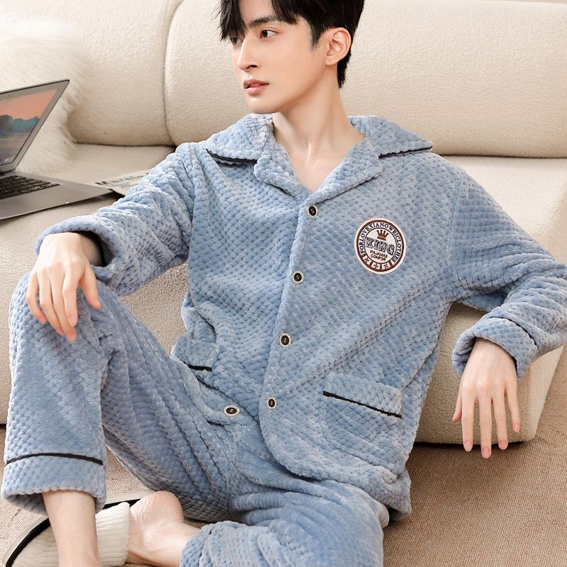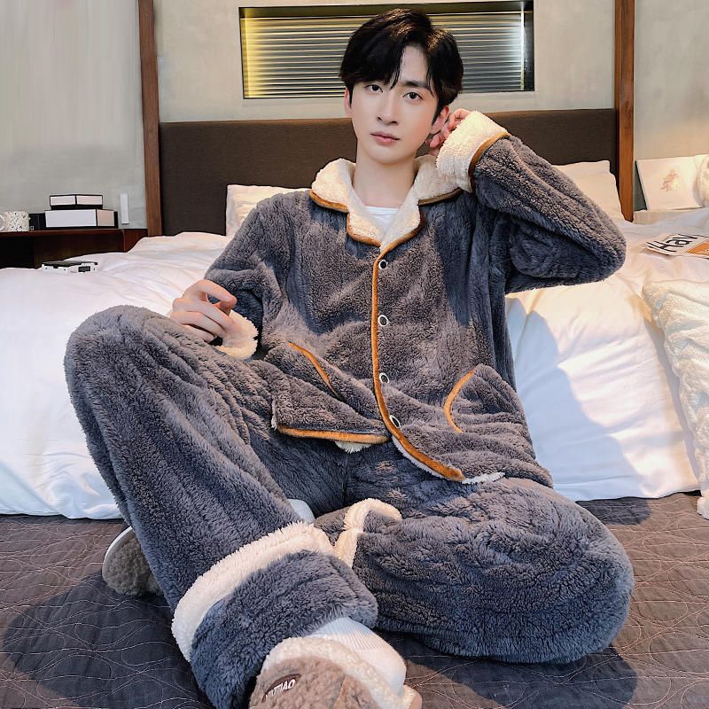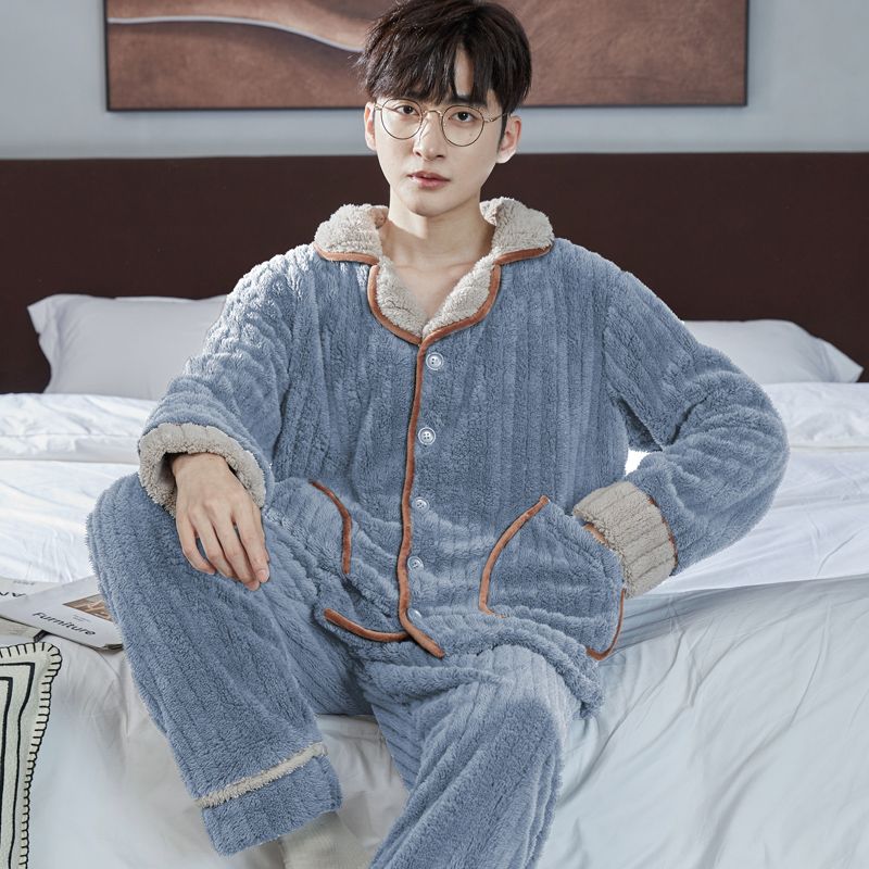 ホームウェア ひんやりボトムス セット パジャマ フランネル メンズ 補正下着 厚手裏起毛 パジャマ コーラルフリース 秋
