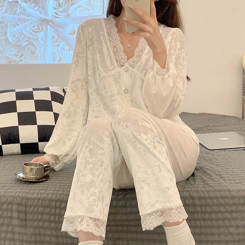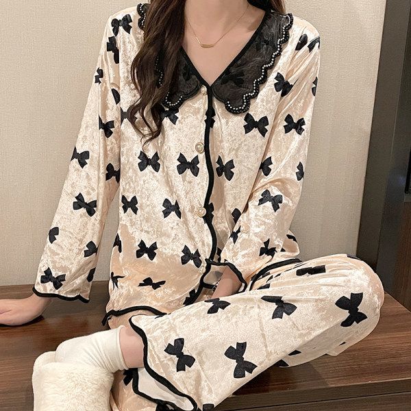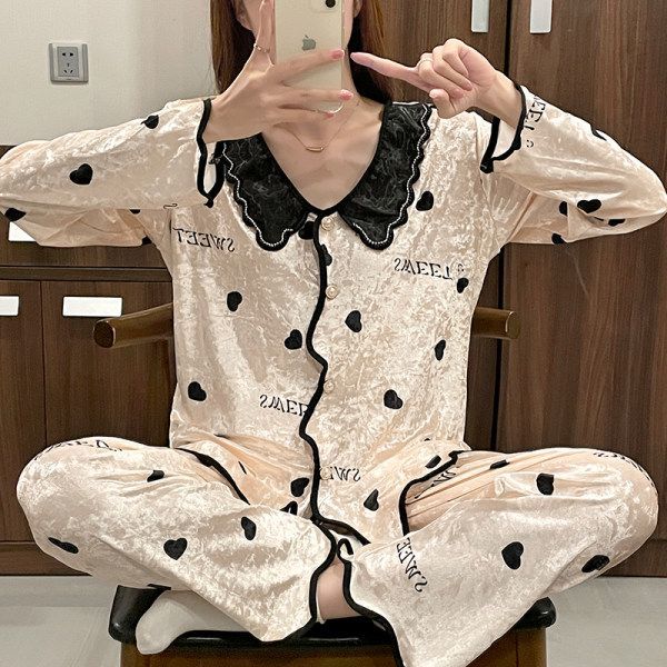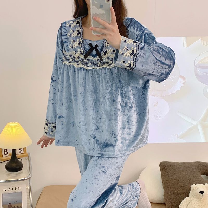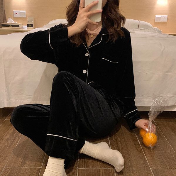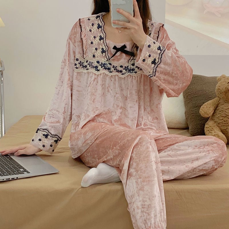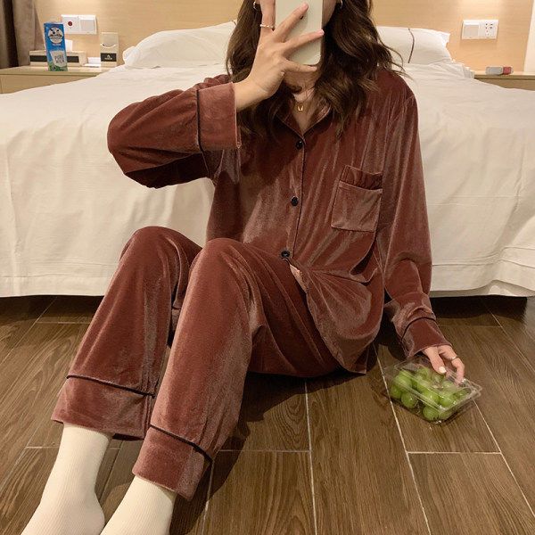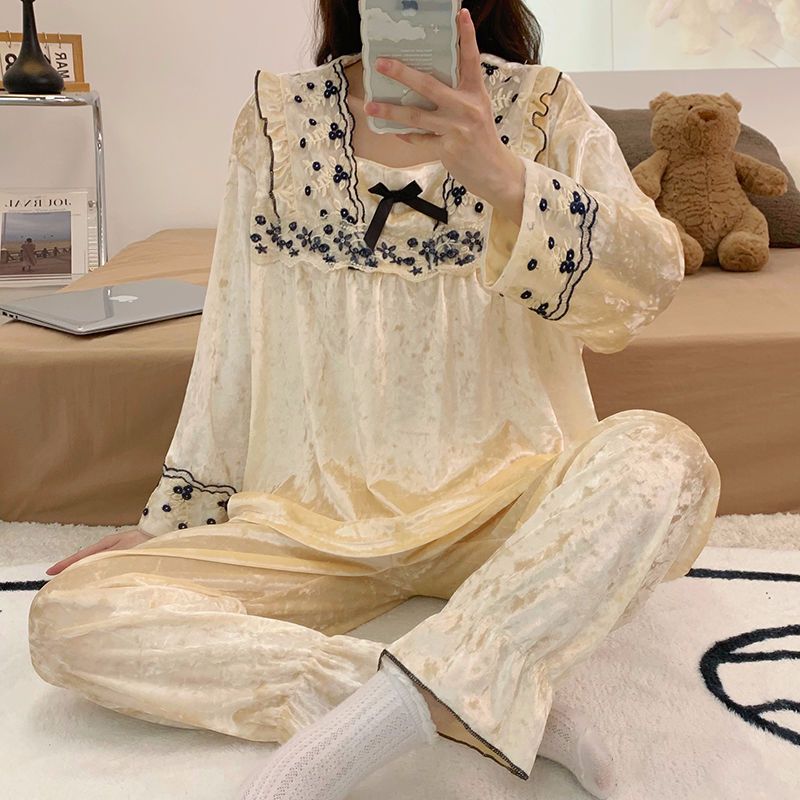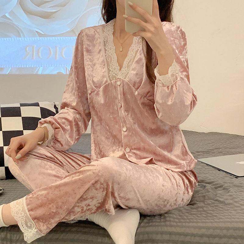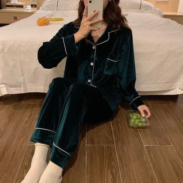 長袖 防寒ルームウェア レディース ゴールドベルベット 吸汗通気 韓国 かわいい セットアップ 柔らかい肌触り 部屋着 寝間着 女の子 肌に優しい ルームウェア パジャマ パジャマ 秋冬春