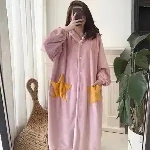 ナイトガウン レディース パジャマ ホームウェア フランネル 裏起毛 厚手 ひんやりボトムス 補正下着 キュート ネグリジェ ロング レディース