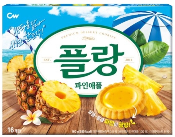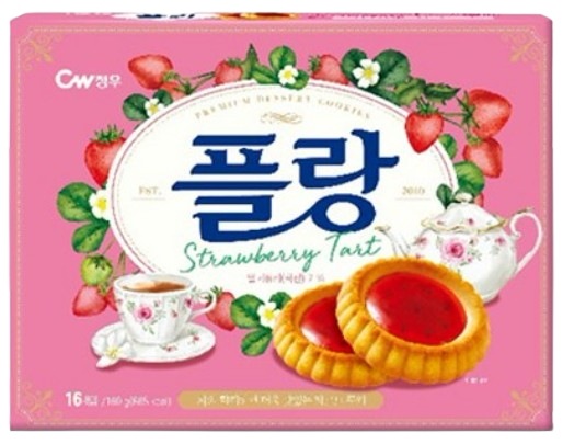 チョンウ食品[2+2] プラン いちごタルト クッキー プラン 白桃クッキー(フラットピーチ)パイナップル クッキー 160g フルーツクッキー いちご 桃 パイナップル 韓国スイーツ 大容量 個包装 韓国お菓子