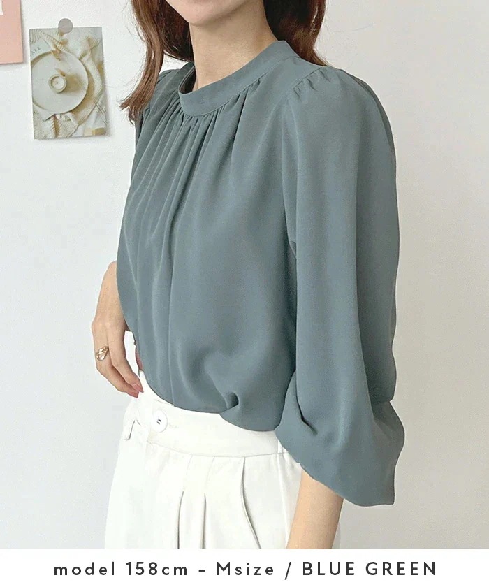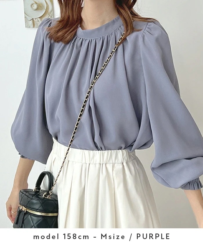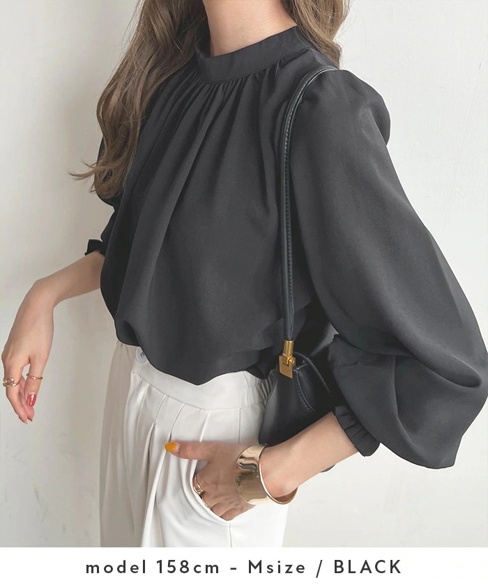 ブラウス レディース 長袖 入学式 オケージョン オフィス ハイネック スタンドカラー リボン XL 上品 バルーン袖 フリル / ハイネックバルーンスリーブブラウス
