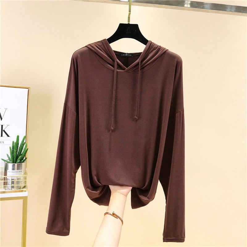 Tシャツ カットソー レディース 長袖 フード付き 無地 シンプル トップス 紫外線対策 体型カバー 着痩せ ゆったり おしゃれ インナー 通勤 通学