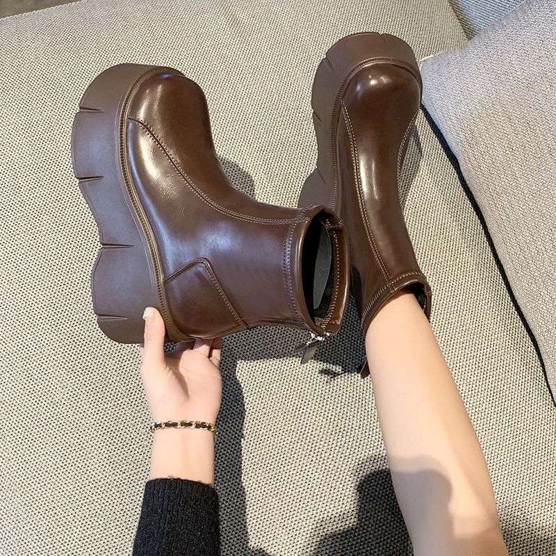 【人気商品】厚底シューズ ブーツ 2024春秋高マーチンブーツショートブーツ新型小柄マドレーヌ厚底マーチンブーツミドルブーツ レディース 韓国ファッション